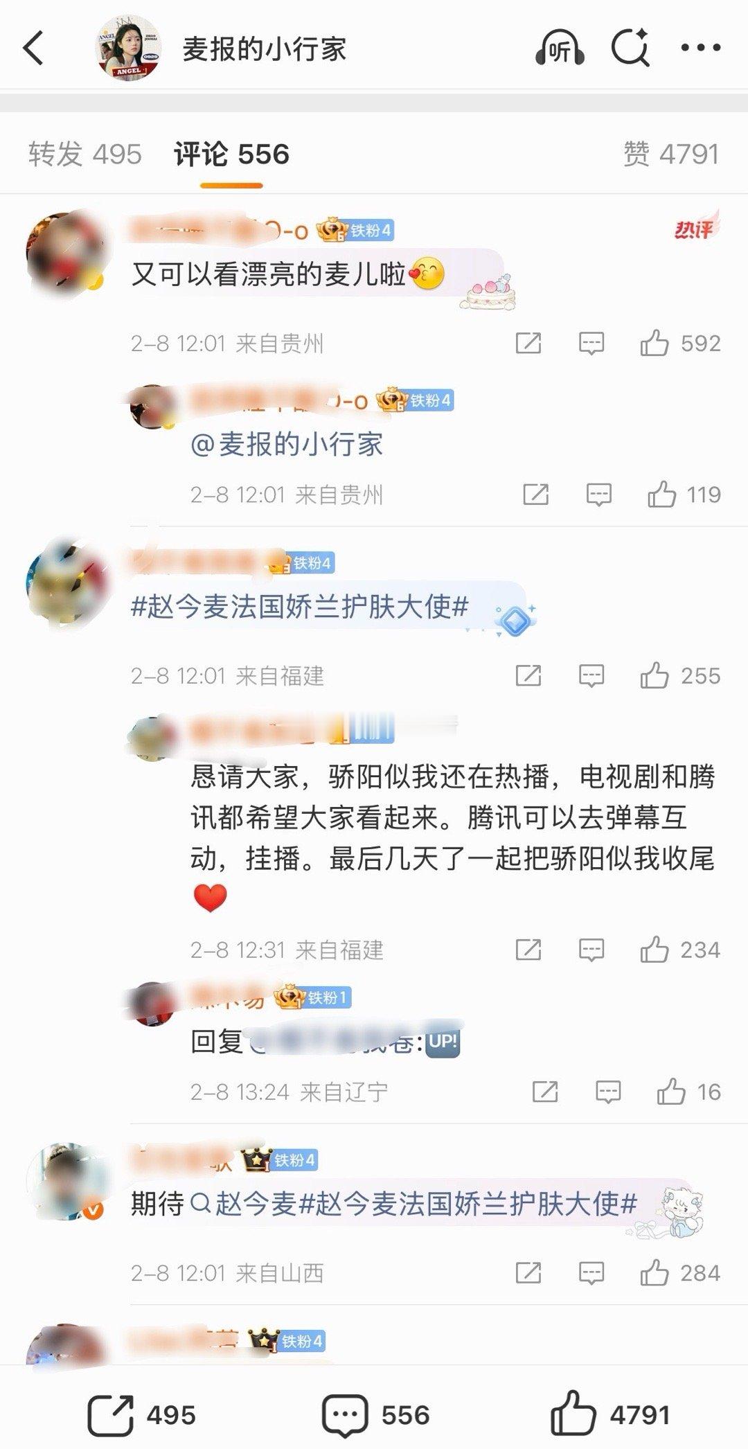 宋威龙赵今麦官宣情人节的双人商务后,两家评论区