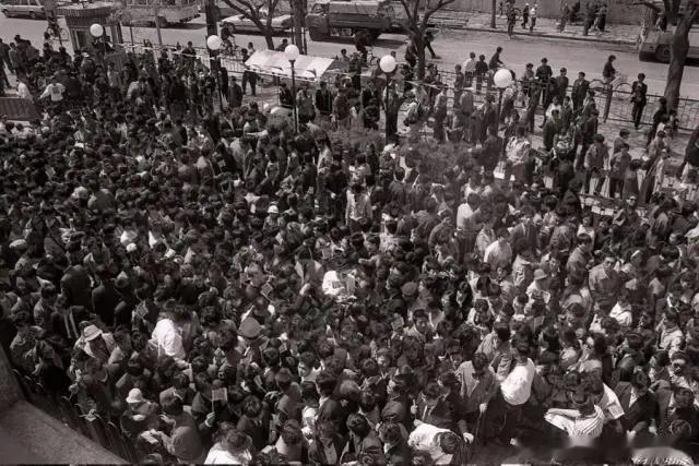1992年4月23日,北京首家麦当劳快餐店落户王府井。图为门外排队等候品味洋快餐的人群。