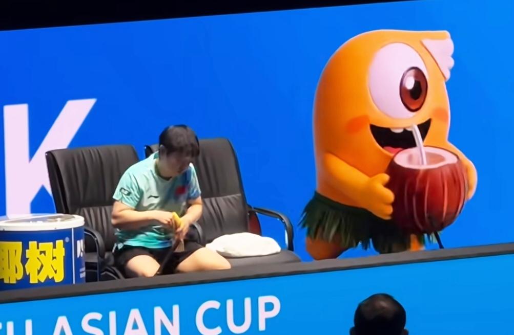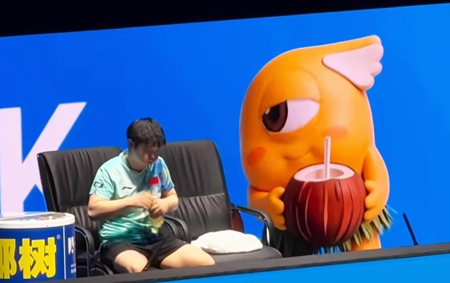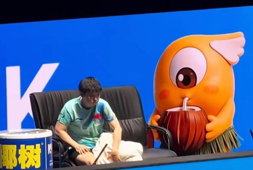 竟然出现这么萌萌哒的一幕, 真是可爱的不要不要的, 谁这么会安排。 莎莎在比赛局间休息, 屏幕后边出现的吉祥物, 竟然像真的一样站在莎莎身边。 莎莎喝水, 它喝椰汁, 喝完还看了一眼莎莎。 网友们纷纷调侃, 吉祥物好像在跟莎莎互动一样, 还偷瞄莎莎, 这动画是掐点播的吧, 这也太会整了。 吉祥物好像在说: “莎莎快看,快看, 可好喝了, 你也来两口吧!” 这广告做得太到位了, 这一幕太可爱了, 一个比一个萌。 (图片源自于网络)