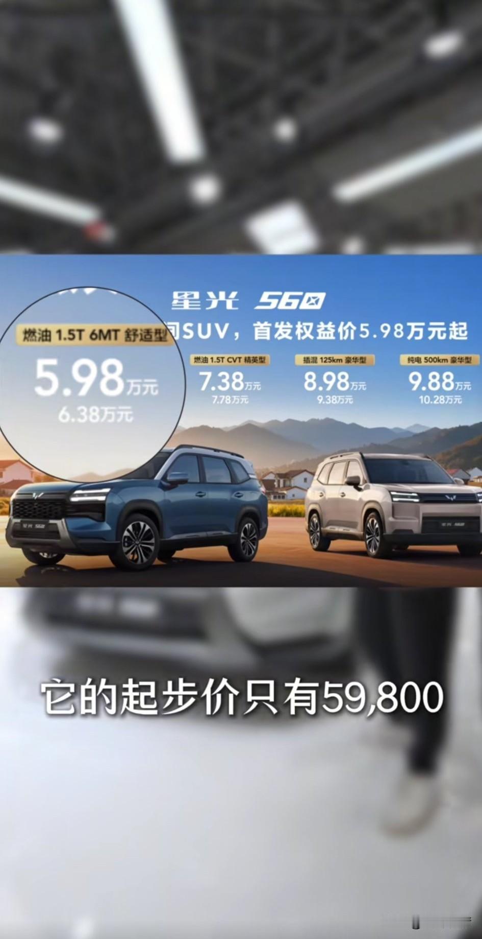实在想不到这是一个六七万的车, 这就是五菱星光560, 他的首发最低价是5.98万, 纯电的会相对贵一些, 但是最贵的也就9.88万元, 一看他的大车型就知道了, 这就是妥妥的SUV, 还真是人民需要什么,五菱就造什么, 这么便宜的一辆车,配置也是相当不错,车内的装饰非常的不错, 整个体验也非常的棒, 尤其他的大空间坐着非常舒适, 而且颜色非常的典雅大方, 试驾过的都说比较不错, 车身和五菱星光730一脉相承, 大家都知道五菱的车性价比都很高, 就从他的外观就非常的吸引人, 很多人看到后都爱不释手, 如果想换车的确实可以考虑一下, 大家觉得五菱星光560怎么样?