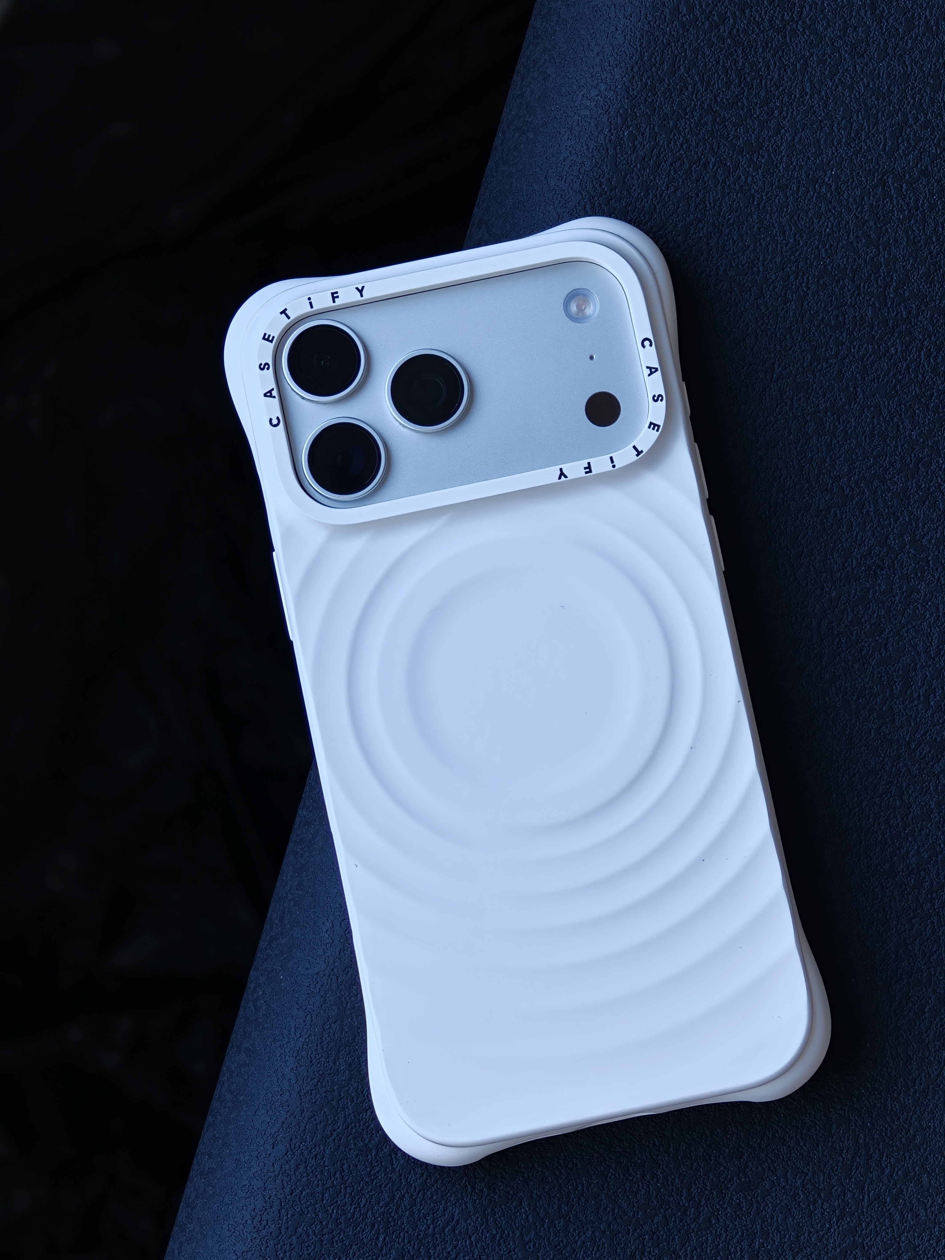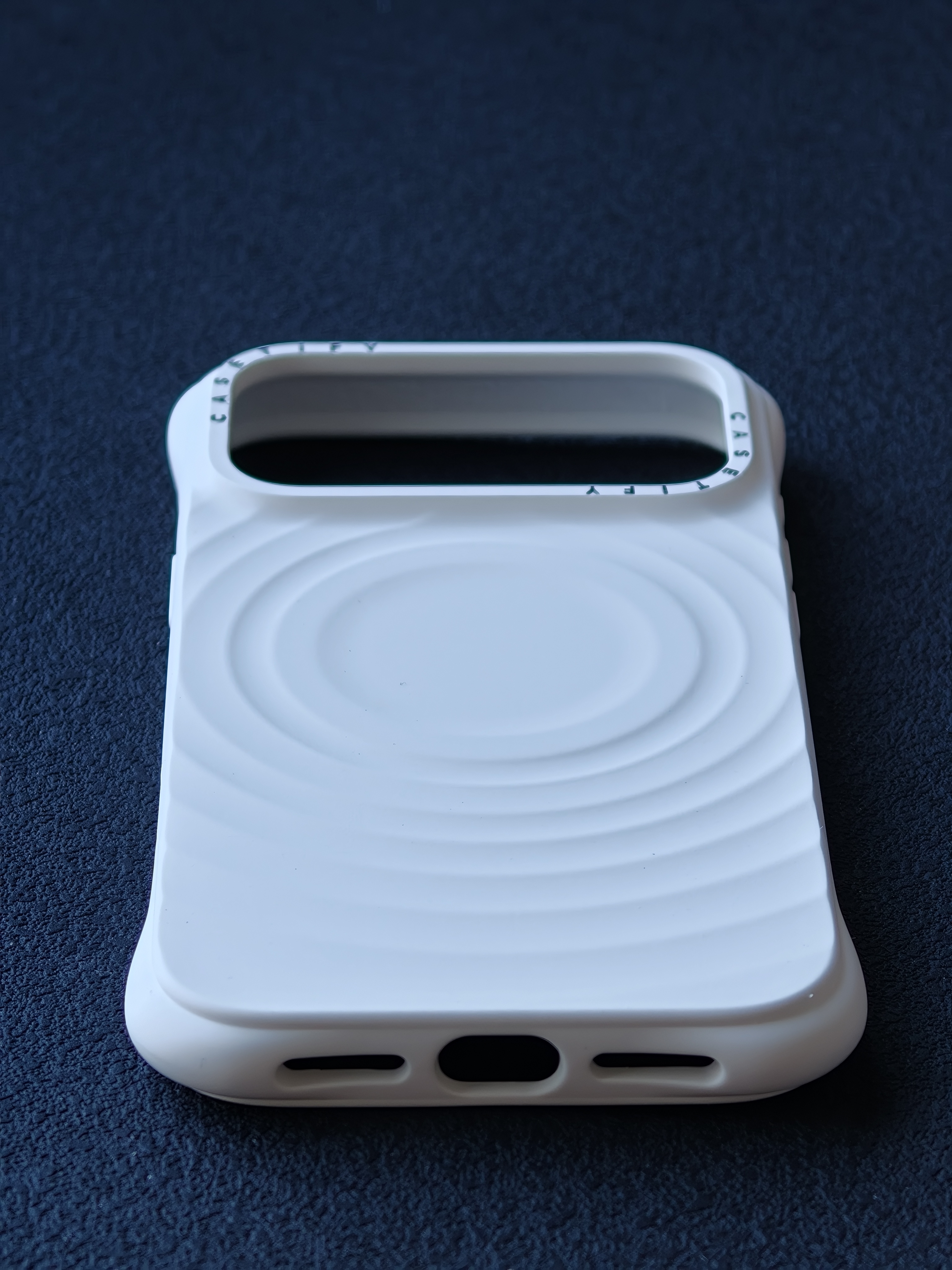 有一说一,Casetify 波漾壳确实还可以,不是大塑料片子,是液态硅胶材质的,手感非常好,就是有点厚。