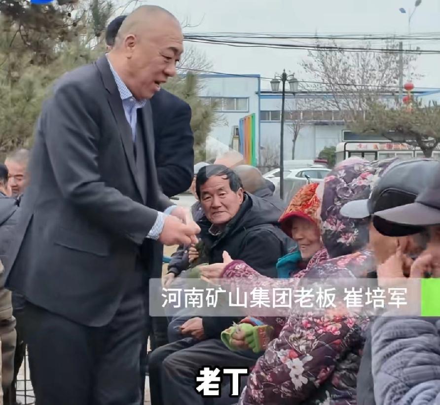 崔培军发钱了,不过不是给员工发,到工厂附近村庄、敬老院,进行春节慰问,每位老人500元钱,还有米面油,老人拿钱拿物很开心,发钱的崔培崔总也很开心,大家都很开心!发现一个特点,崔培军发钱时,不喜欢把很多钱拿在手里,而是安排一个工作人员,递一份儿发一份儿,很有派!快过年了,今年还没看到河南矿山年终奖员工数钱大会,继续关注!
