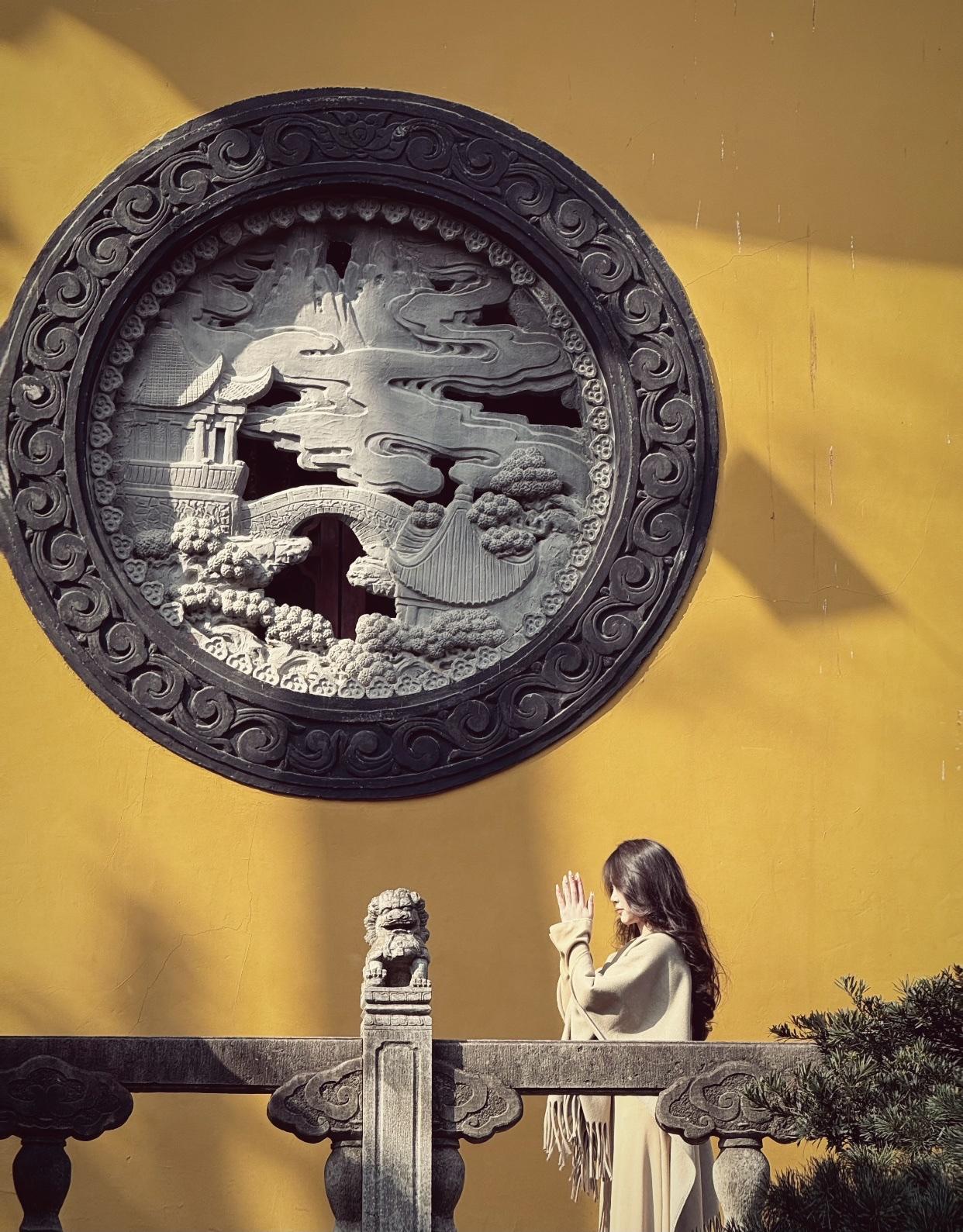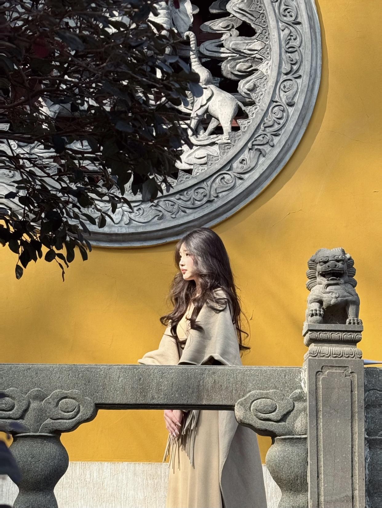 少女风写真照古风少女倚栏望,黄墙青瓦映芳容。