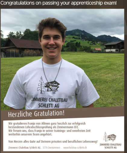 17岁时,冯-阿尔曼的父亲突然离世,这让他陷入困境,甚至断送了滑雪生涯。为了继续训练,他发起了一项众筹活动。“好在筹集了足够的资金,使我能够坚持一个赛季。在那个赛季之后,我成功进入了瑞士国家滑雪队。”
