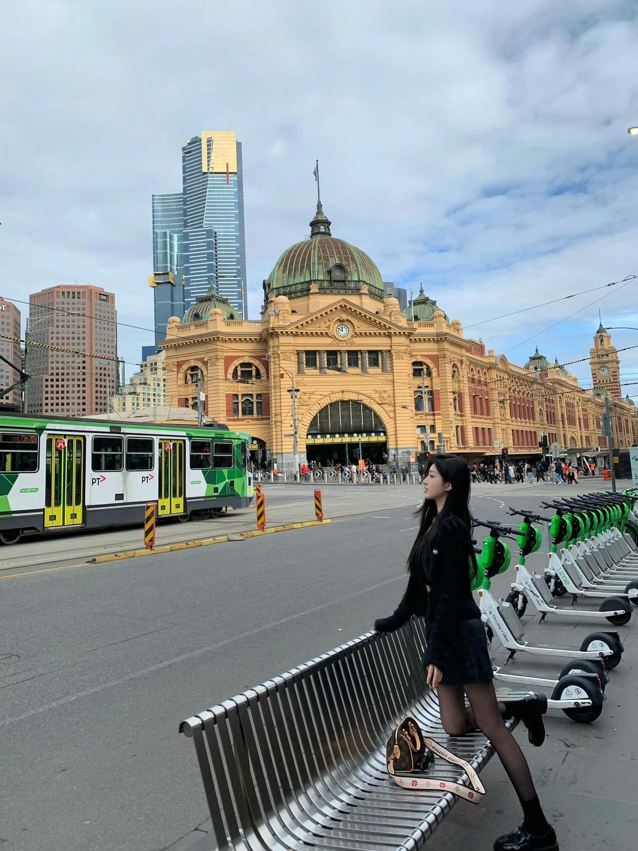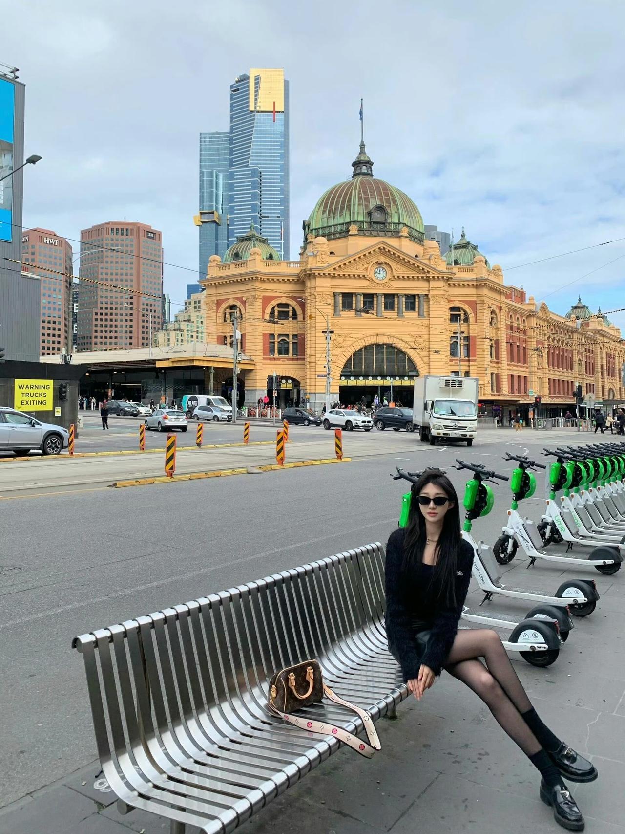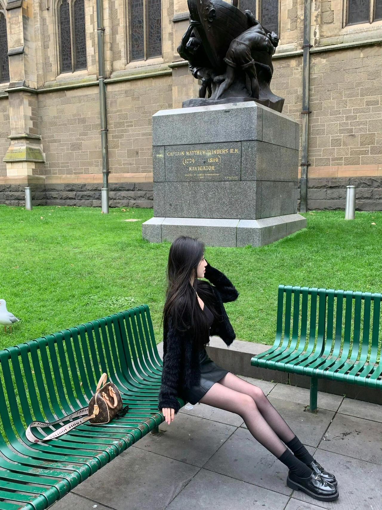 这套是暗黑甜酷风,很适合秋冬的户外休闲/街拍场合~ 核心单品是黑色短款毛绒外套+皮质短裙,毛绒材质增加了温暖的慵懒感,皮质元素又带出酷飒气场;搭配厚底乐福鞋,再加上经典老花包,甜酷中还带了点复古贵气,和背景的复古建筑也很适配。黑色系穿搭