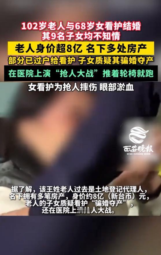 台北百岁亿万富豪秘娶68歲女看护!九子女毫不知情,8亿房产引爆家庭大战,背后真相刺痛无数人心 当儿子提着营养品推开病房门却被陌生女人拦下时,他绝不会想到,这场普通的探视会揭开一场持续数年的温柔陷阱。102岁的父亲躺在床上,身旁站着那位照顾他六年的68岁赖姓看护——此刻她已手持结婚证书,成为了法律意义上的继母。而老人名下遍布台北的房产和超过8亿新台币的资产,正在暗流中悄然改写着继承剧本。 九个子女同时收到律师函的那天,整个家族像被投入巨石的深潭。有人愤怒砸碎了茶杯,有人连夜查询撤销婚姻的法律条款,更有人直接冲进医院要与看护当面对质。然而当他们隔着病房玻璃看见父亲颤巍巍握住那双布满皱纹的手时,所有准备好的质问都卡在了喉咙里。 这场被子女定性为“骗婚夺产”的戏剧里,藏着被所有人忽略的漫长伏笔。六年两千多个日夜,是谁在凌晨三点扶老人起身如厕?是谁记得他降压药该饭前半小时服用?是谁听他说了上百遍年轻时的垦荒故事?当子女们在家族群里争论赡养费分摊比例时,正是这个被他们轻蔑称作“佣人”的女子,默默换洗着沾污的床单。 房产证上的数字在亲情天平上疯狂加重。子女们突然开始计算:父亲中山区的老宅每坪涨到了多少?内湖那栋商办楼的租金是否按时入账?但他们算不清的是,父亲最后一次和全家人吃饭是哪年春节,也忘了父亲最爱的其实是淡水老街那家已经歇业的桂花糕。 法律条文在情感废墟上冰冷铺开。台湾民法规定,婚姻自由不受年龄限制,配偶继承权优先于子女。看护平静地向媒体展示着公证材料,那些签在病历纸背面的“愿意照顾他一辈子”的承诺,此刻在律师手中化作最锋利的法律武器。而病房里那位百岁老人,只是反复念叨着:“她陪我比你们都久。” 这场跨越三代人的冲突撕开了现代家庭最痛的伤疤——我们用金钱衡量陪伴的价值,用遗产证明孝心的分量,却让最原始的温情在算计中彻底失语。当九个事业有成的子女集体败给一个看护时,他们真正输掉的不是八亿家产,而是父亲六千多个孤独的黄昏。 或许真正该被审视的不是这场婚姻的真伪,而是为什么我们的亲情非要等到遗产分割时才突然炽热。那些在病床前流转的温情时刻,本该属于每个子女,如今却成了需要透过监控录像才能追溯的遗失物证。老人用最决绝的方式,给所有人上了一堂关于“陪伴定价”的残酷经济课。 台北的夜色依旧繁华,医院走廊的争吵终会平息。但这个故事像一面镜子,照见了每个家庭都可能面临的未来。当我们忙着给父母转账、雇保姆、买保健品时,是否想过那位坐在空荡客厅里的老人,真正想要握住的,究竟是谁的温度? 家庭伦理 财产争夺 孤独老龄化 (来源:洵哥根据《西安晚报》报道及台湾地区社会新闻综合撰写)