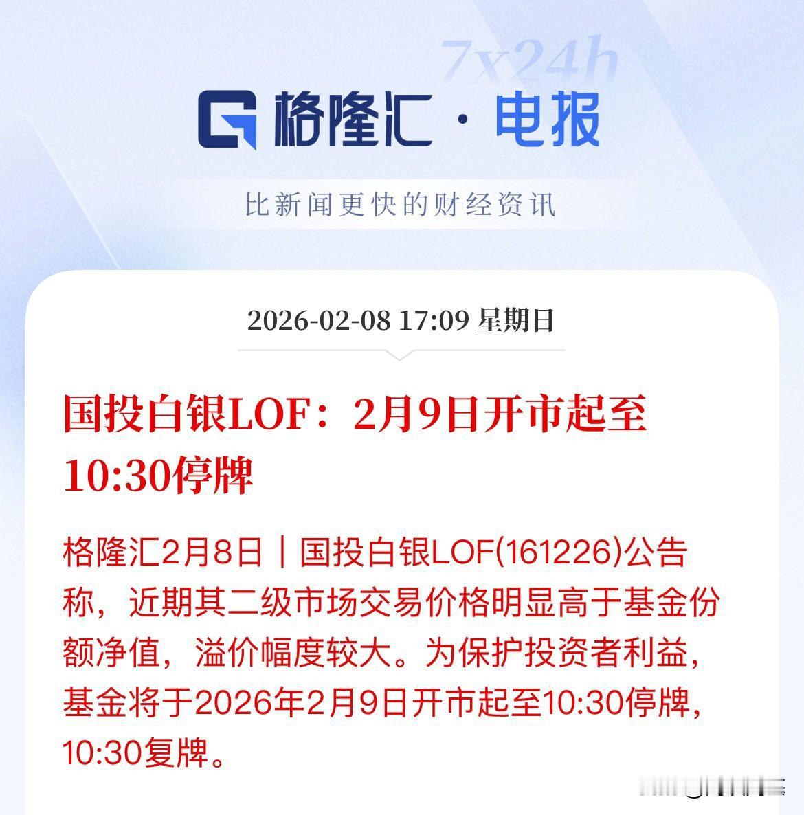 明天是跌停还是修复?神鸡国投白银LOF明天开盘继续停牌一个小时,已经是5连跌停了,开年以来累计涨幅依然高达37%, 周五现货白银迎来修复性暴涨,直接暴涨15.58%,从64美元直接突破77美元/盎司,外加美股全线暴涨,现货黄金大涨5.53%,情绪在回暖,明天总不能再按一个跌停板吧, 从高点的5.247到周五的收盘是3.099,明天要是再来个跌停,那真要腰斩了,整体溢价率还是高居不下达到49.05%, 按这么高的溢价率,泡沫还得挤挤,这时候谁敢进去接飞刀。