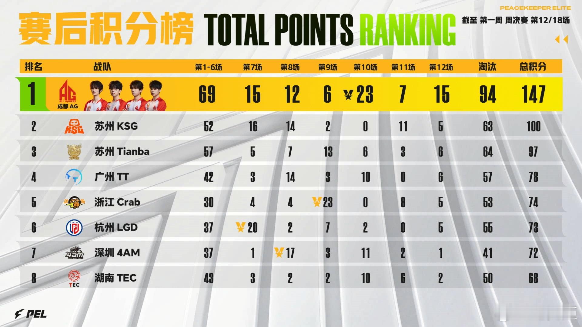 PEL春季赛首周冠军之夜 ⭐️ 今晚决战!首周王座花落谁家?当猫耳少女的枪口已对准赛场,积分榜上成都AG以147分的绝对优势领跑!花花39次淘汰一骑绝尘,仙崽、子枫齐头并进——红白军团的王者之势已现。然而悬念仍在继续:最终周冠归属何人?MVP是否另有黑马?今晚18:00,最终决战打响!锁定直播,见证历史一刻!