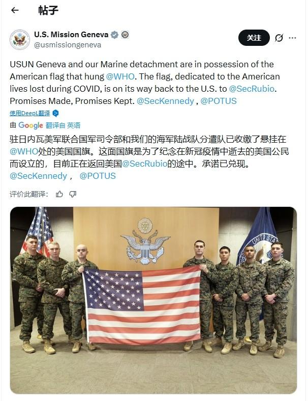 一点都不装了!美国出兵从世卫总部抢国旗 美国把它那副无赖嘴脸发扬得淋漓尽致。 日前,有外国网友注意到,美国驻日内瓦使团居然真的出动海军陆战队强行抢回了被世卫组织扣押的国旗。 世卫组织为啥会扣押美国的国旗?美国又为啥要动用到海军陆战队这种武力,去抢一面国旗? 最核心的问题就是:钱。 因为美国一直拖欠会费,还坚持要退出,世卫组织才做出了扣押美国国旗的决定。 可能有人会问,扣押国旗有啥用?其实这是国际上一种象征性的警告,意思就是提醒美国,你还没履行完成员国的义务,没结清欠费,就不能随便脱离组织,就算要退出,也得按规矩来,不能耍无赖。 而且世卫组织总部在日内瓦,美国驻日内瓦使团负责处理美国和当地国际组织的相关事务,国旗也是由这个使团负责悬挂和管理的,世卫组织扣押的,就是美国悬挂在其总部相关区域的国旗。 世卫组织本来以为,扣押国旗能让美国正视欠费问题,要么结清会费,要么好好协商解决,但没想到,美国根本不吃这一套,反而来了个更蛮横的。 日前,美国驻日内瓦使团直接出动了海军陆战队,这可不是普通的工作人员,是美国的正规部队,专门负责海外军事行动和保卫任务的。 这些海军陆战队士兵赶到世卫组织总部后,没有和世卫组织的工作人员沟通协商,也没有出示任何合理的手续,直接强行闯入悬挂美国国旗的区域,把被扣押的国旗抢了回来,全程态度强硬,甚至还和现场的世卫组织工作人员发生了轻微的争执,完全不顾及国际礼仪和多边组织的尊严。 这件事被外国网友拍下来发到网上后,很快就引发了热议,很多人都批评美国的无赖行径。 可能有人会觉得,不就是一面国旗吗,美国至于这么大动干戈? 其实不然,美国这么做,根本不是为了一面国旗,而是为了彰显自己的霸权,说白了就是“我想怎么样就怎么样”,不管是国际规则,还是其他国家、国际组织的意见,都别想约束我。 美国一直标榜自己是“基于规则的国际秩序”的领导者,但实际上,它从来都是只讲自己的利益,不讲规则,合则用、不合则弃,一旦国际组织不符合自己的利益,要么威胁退出,要么拖欠会费,现在居然还动用到武力,强行抢回国旗,这就是典型的双重标准和霸权主义。 深入想想,美国之所以这么无赖,根源就是它的“美国优先”政策。 这些年,美国不管是退出巴黎协定、联合国教科文组织,还是这次退出世卫组织、抢国旗,核心都是为了维护自己的利益,不愿意承担国际责任,也不愿意被国际规则约束。 就拿世卫组织来说,美国曾经是世卫组织的主要创始国和最大资助方,在一些全球卫生议题上也发挥过积极作用,但自从特朗普政府推行“美国优先”政策后,一切都变了,只要世卫组织的决策不符合美国的利益,美国就会挑刺、施压,甚至退出、欠费。 而且美国把缴纳国际组织会费当成了外交杠杆,高兴了就交一点,不高兴了就拖欠,想用这种方式控制国际组织的决策,一旦达不到目的,就会采取极端手段。 这次抢国旗事件,就是美国这种心态的集中体现,它觉得世卫组织扣押国旗是在挑衅自己的权威,损害了美国的颜面,所以不管不顾,直接出动部队抢回来,哪怕被全世界批评,也毫不在意。 更让人无奈的是,美国这么做,不仅破坏了国际规则,还损害了全球卫生事业的发展。 世卫组织负责协调全球疫病监测、疫苗研发、信息共享,这些都和全世界人民的健康息息相关,包括美国民众。 美国拖欠会费、退出组织,甚至用武力挑衅世卫组织,只会削弱世卫组织的能力,影响全球抗疫和公共卫生合作,最终受损的,其实也包括美国自身的利益。 美国国内的很多公共卫生专家也反对退出世卫组织,他们也明白,在全球化时代,传染病无国界,光靠自己,根本没法保护本国公民的健康。 现在,美国抢回了国旗,但它拖欠世卫组织的会费依然没有结清,国际社会对它的批评也从来没有停止过。 这件事也让大家看清楚了,美国的霸权主义已经到了肆无忌惮的地步,它所谓的“规则”,只是用来约束别人的,对自己从来没有任何约束力。 而美国这种无赖行径,最终只会损害自己的国际信誉,让越来越多的国家看清它的真面目,远离它的霸权体系。 毕竟,在这个相互依存的时代,没有哪个国家可以独善其身,只讲利益、不讲规则、耍无赖,最终只会自食恶果。