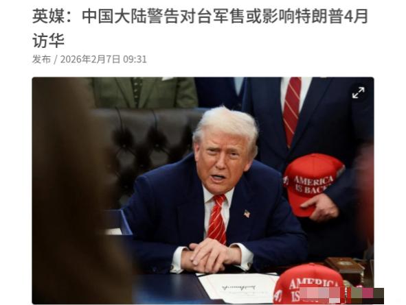 英媒表示,中国对美国把话说的很直接!如果美国执意对台军售,特朗普就来不了北京了!2月7日,根据英国媒体报道,英媒称,中国大陆已经警告美国,如果再有对台军售,这可能影响到美国总统特朗普4月访华事宜。中国明确要求,美国务必慎重处理对台军售问题。 事情的起点,是2月4日中美元首的重要通话。在这次通话中,中方明确强调,台湾问题是中美关系中最重要、最敏感的核心问题,是第一条不可逾越的红线,台湾是中国领土不可分割的一部分,中方捍卫国家主权和领土完整的决心坚定不移,永远不可能允许台湾分裂出去。 同时,中方直接向美方提出,必须慎重处理对台军售问题,这不是外交辞令,而是明确的底线告知。特朗普在通话中也表示,重视中方在台湾问题上的关切,愿同中方保持沟通,致力于维护美中关系稳定。 然而仅仅几天之后,英国《金融时报》等权威媒体便披露,美国政府内部正在酝酿新一轮对台军售,相关方案涉及先进防空系统等装备,规模与金额均可能创下近年新高,这一动向直接与元首通话达成的共识形成反差,也让中方的警告变得更加紧迫。 很多人可能会疑惑,一次对台军售,为什么会影响到一国元首的访华行程?其实道理很简单,国家交往的基础是相互尊重,而台湾问题是中国核心利益中的核心,没有任何妥协、商量的余地。 美国对台军售,本质上是违反一个中国原则和中美三个联合公报规定,干涉中国内政、纵容“台独”分裂势力的行为,直接损害中国的主权与安全,破坏台海地区的和平稳定。 过去几十年里,美方多次违背“八·一七”公报中逐步减少对台军售的承诺,军售规模越来越大、装备越来越先进,不断向“台独”势力发出错误信号,加剧台海紧张局势,这已经是中美关系中最突出的风险点之一。 中方多次明确反对,不是小题大做,而是守护国家领土完整的必然选择,任何国家都不会在核心主权问题上退让,这是国际交往的基本常识。 从外交逻辑来看,中方将对台军售与特朗普访华行程关联,不是刻意设置障碍,而是明确告知美方:“行动决定氛围,选择决定结果”。 元首访问是两国关系高水平互动的体现,需要稳定的双边氛围、相互尊重的政治基础,以及切实维护彼此核心利益的行动共识。如果美方一边口头表示重视中方关切,一边执意推进对台军售,本质上是言而无信、双重标准,既违背元首通话的共识,也破坏中美互动的基本前提。 这样的情况下,强行推进访问不仅没有意义,还会损害中美关系的互信基础,中方自然不会接受。 这一态度,既是对美方言行不一的明确回应,也是向国际社会表明,中国在核心利益问题上,立场始终如一,说到做到,不会因为任何外交议程而模糊底线。 从现实影响来看,美方如果执意推进对台军售,损害的绝不仅仅是一次元首访问,更是中美两国在经贸、气候变化、全球治理等诸多领域的合作空间。 当前中美两国各自面临国内发展任务,也共同肩负着维护全球稳定与发展的责任,双方在经贸往来、产业链稳定、地区安全等方面有广泛共同利益,合作符合两国人民的根本利益,也符合世界的期待。 而台湾问题是中美关系的政治基础,基础不牢,地动山摇,一旦美方突破红线,必然引发中方坚定反制,两国关系的缓和势头会被打断,原本可以推进的务实合作也会受到影响,最终损害的是美国自身的利益。 反观台海局势,美国对台军售从来不是“保护台湾”,而是把台湾当作棋子,加剧两岸对立,让台湾民众承担安全风险。“台独”分裂势力企图倚仗外部势力谋“独”,注定是死路一条,无论美方出售多少先进武器,都阻挡不了中国实现完全统一的历史大势,只会让台海局势更加紧张,让“台独”势力更加铤而走险,最终引火烧身。 中方始终以最大诚意、尽最大努力争取和平统一的前景,但绝不允许任何外部势力干涉台湾事务,绝不允许“台独”分裂行径得逞,这一底线清晰明确,没有任何商量余地。 英媒的报道之所以引发广泛关注,正是因为它准确捕捉到了当前中美关系的关键矛盾:美方能否恪守承诺、尊重中国核心利益,直接决定双边关系的走向,也直接影响特朗普4月访华的可能性。 中方的态度始终清晰,不搞模糊博弈,不玩外交话术,把底线摆在明面上,把选择交给美方——要么恪守一个中国原则、停止对台军售,为中美高层互动营造良好氛围,推动两国关系朝着合作共赢的方向发展;要么执意挑衅、突破红线,承担双边关系倒退、高层访问受阻的后果。 国家之间的交往,最重信守承诺、相互尊重,核心利益问题没有折中方案,主权完整不容任何侵犯。中方的直接表态,既是维护国家主权的必然之举,也是维护中美关系稳定的理性选择,更是对台海和平稳定的有力守护。 未来一段时间,美方的具体行动将成为关键,是兑现元首通话中的承诺,慎重处理对台军售问题,还是一意孤行、继续挑衅,不仅决定特朗普能否顺利访华,更决定2026年中美关系的整体走向,也将深刻影响台海地区乃至亚太地区的和平与稳定。
