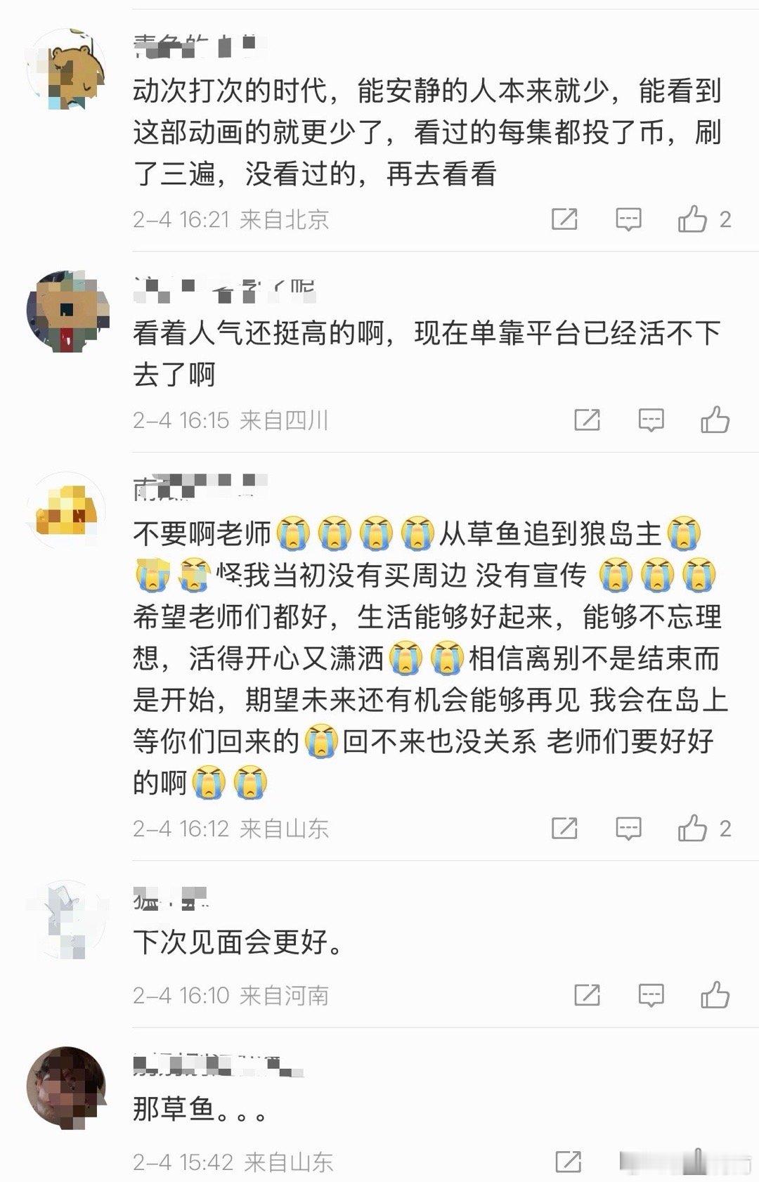 狼岛主回应解散 如果每一次优质原创的枯萎,都只换来片刻叹息而非系统反思,那么“狼岛主”绝不会是最后一个。国漫的土壤,不能只靠为爱发电者的血肉来肥沃。我们需要机制,而不仅仅是感动。狼岛主说做原创动画是一场豪赌