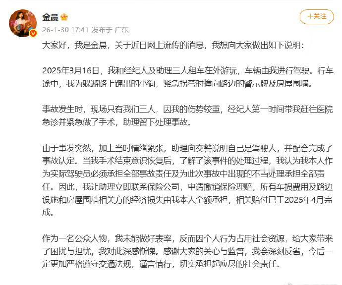 金晨驾车事故引热议:为何逃逸仅罚款1500元?律师详解法律边界 近日,演员金晨在绍兴柯桥区驾车发生单方事故,导致他人轻微受伤后离开现场,最终被处以1500元罚款,事件迅速引发公众关注。不少网友质疑:肇事逃逸为何不构成犯罪?明星是否享有特殊待遇? 为何不构成交通肇事罪? 专业律师指出,交通肇事罪的成立需满足三个关键条件: 行为人负事故全部或主要责任; 造成他人重伤、死亡或重大财产损失; 存在逃避法律追究的主观故意。 本案中,金晨未承担事故主要责任,仅造成轻微人身伤害,且无证据显示其主观上意图逃逸,因此不符合刑事立案标准。 律师观点:行政处罚已属“顶格处理” 河南泽槿律师事务所主任付建表示,根据《道路交通安全法》,造成轻微事故后逃逸尚不构成犯罪的,处罚范围在200元至2000元罚款,并可并处拘留。金晨被罚1500元已接近处罚上限,体现了执法部门对逃逸行为的“零容忍”态度。 舆论焦点:法律面前是否人人平等? 事件发酵后,部分网友质疑明星是否凭借社会资源获得“宽松处理”。法律人士强调,本案的处置严格依据事实和证据,损伤程度、责任认定等客观要素才是决定处罚性质的关键,与当事人身份无关。 警示意义:小事故也可能引发大责任 交警部门提醒,发生交通事故后应立即停车、保护现场、救助伤者。即便事故轻微,逃逸行为也将面临罚款、扣分乃至行政拘留的处罚,若造成严重后果更可能追究刑事责任。 法律的红线从不因身份而弯曲。此案既是对“肇事逃逸必严惩”的普法警示,也折射出公众对司法公正的深切期待。唯有坚持依法裁判,才能守护每一位公民对公平正义的信仰。 交通