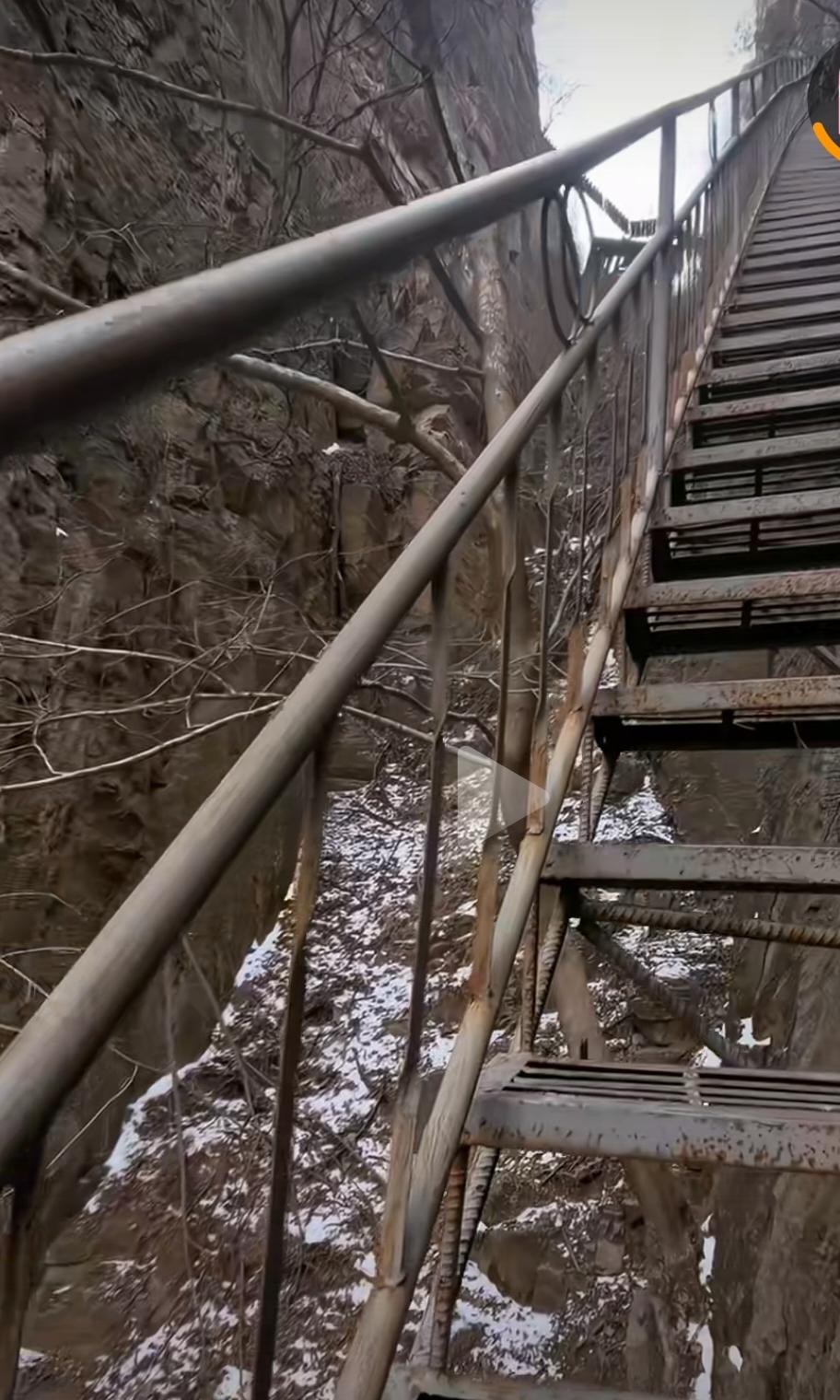网友拍的已经废弃的太行山深处的天梯。还有凉亭,看来当年是人间香火不断。可是n年之后,早已经没有人走这条路了。但有一点可以肯定,绝对不是解放前的。因为你看这钢管焊接技术,这油漆工艺。虽然我承认古代的冶金技术也确实很高明,但是要达到这种工艺,而且要大规模生产,我看还是有点儿费劲。 心里面很自然的想,这条天梯当年是干嘛的?有谁从这里走过?人们来这里干嘛?这里曾经发生过怎样的故事?忽然感觉自己好奇心好重啊。