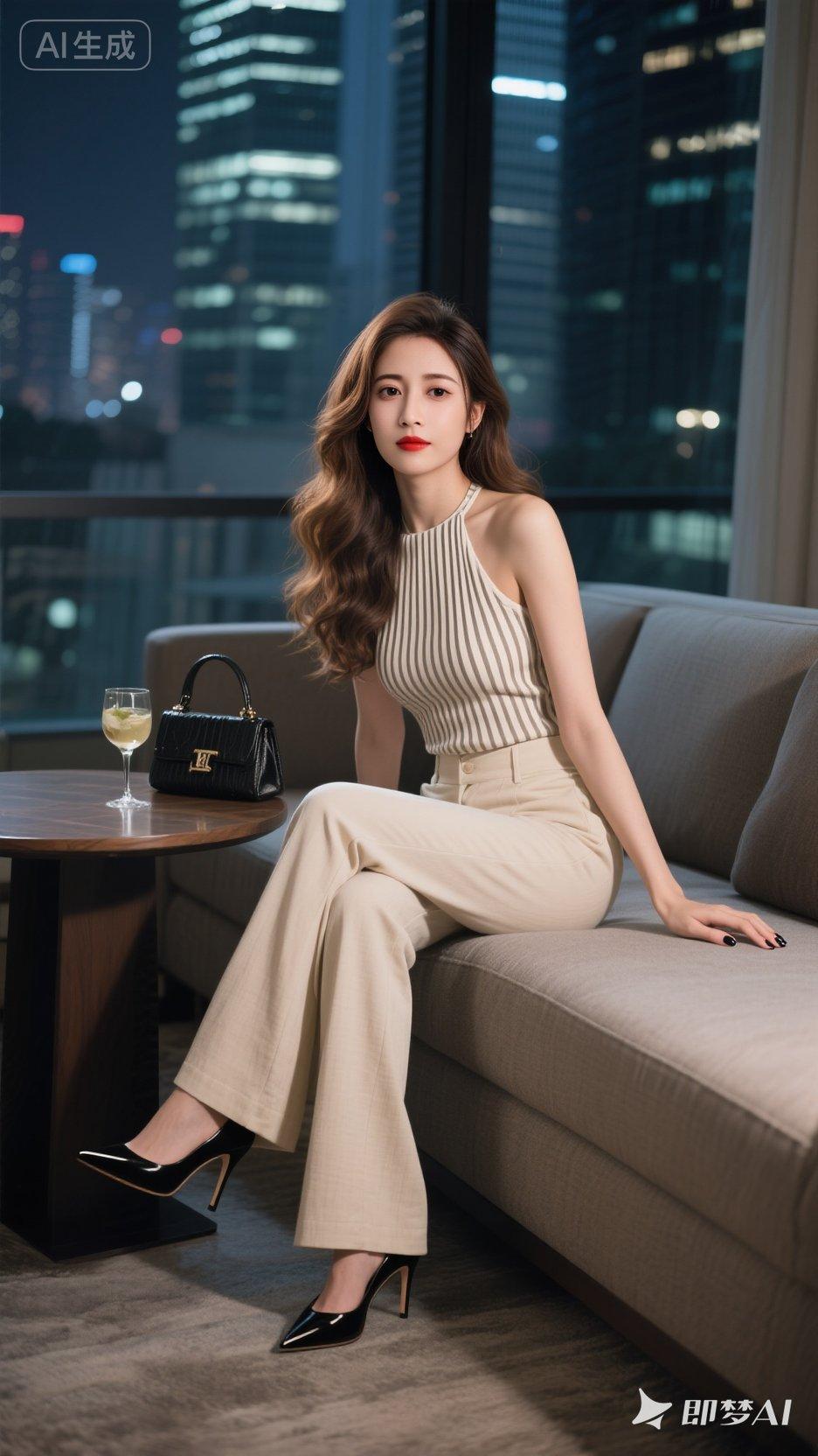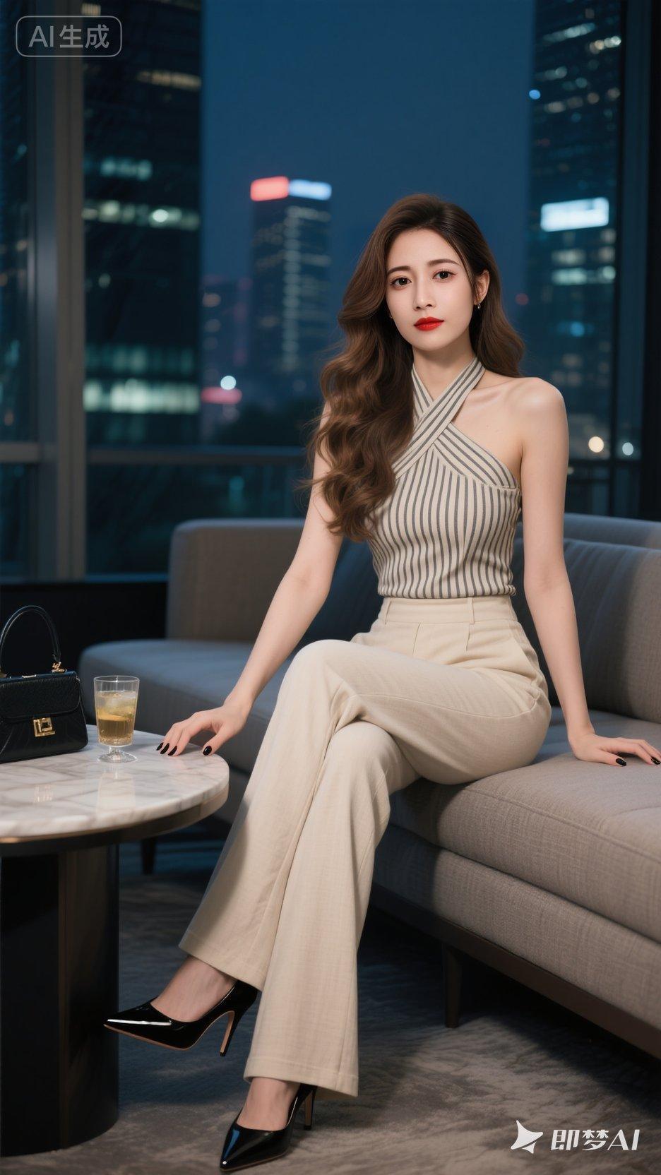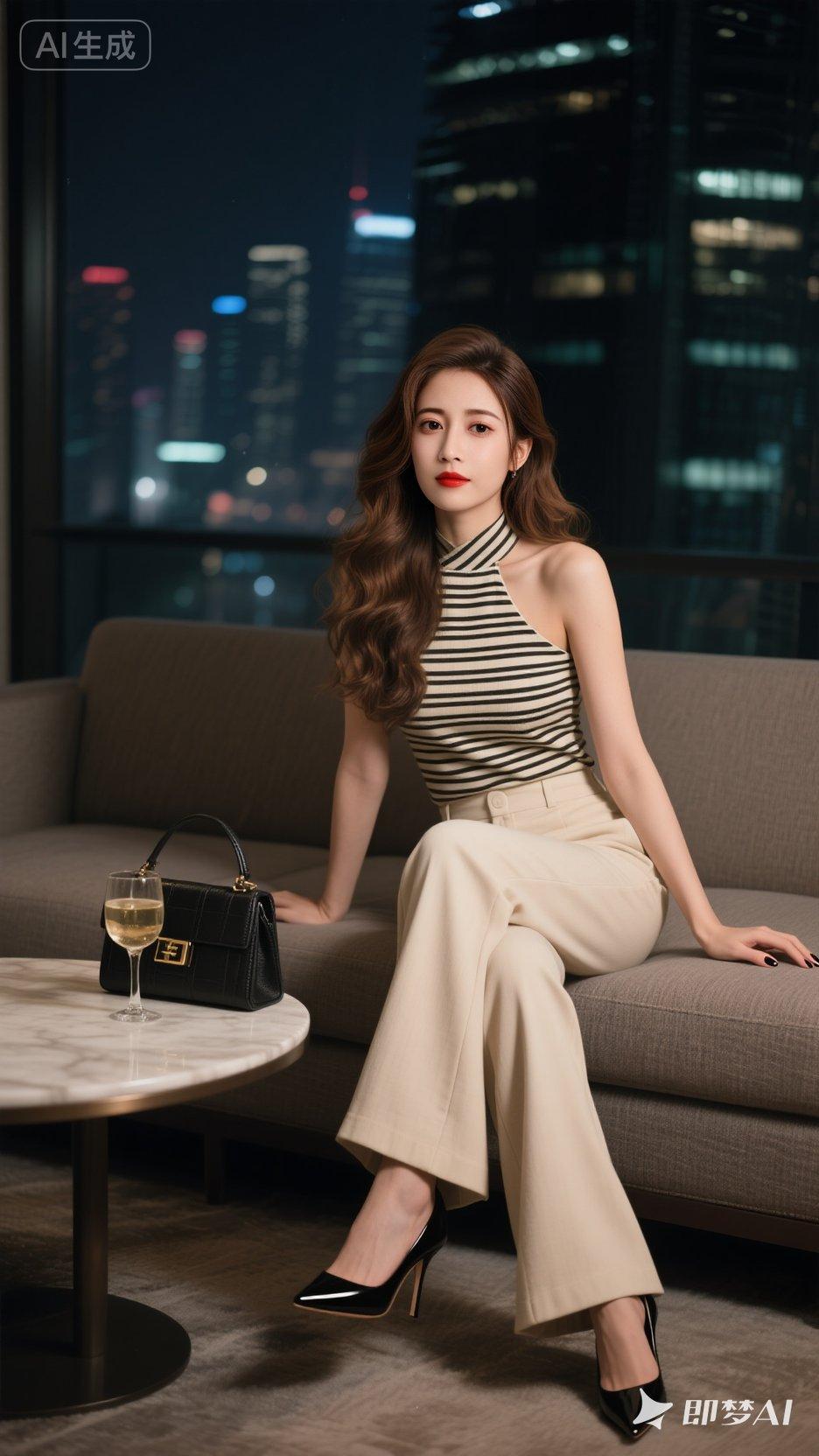 都市女郎的优雅之夜,时尚穿搭与城市夜景的完美融合。