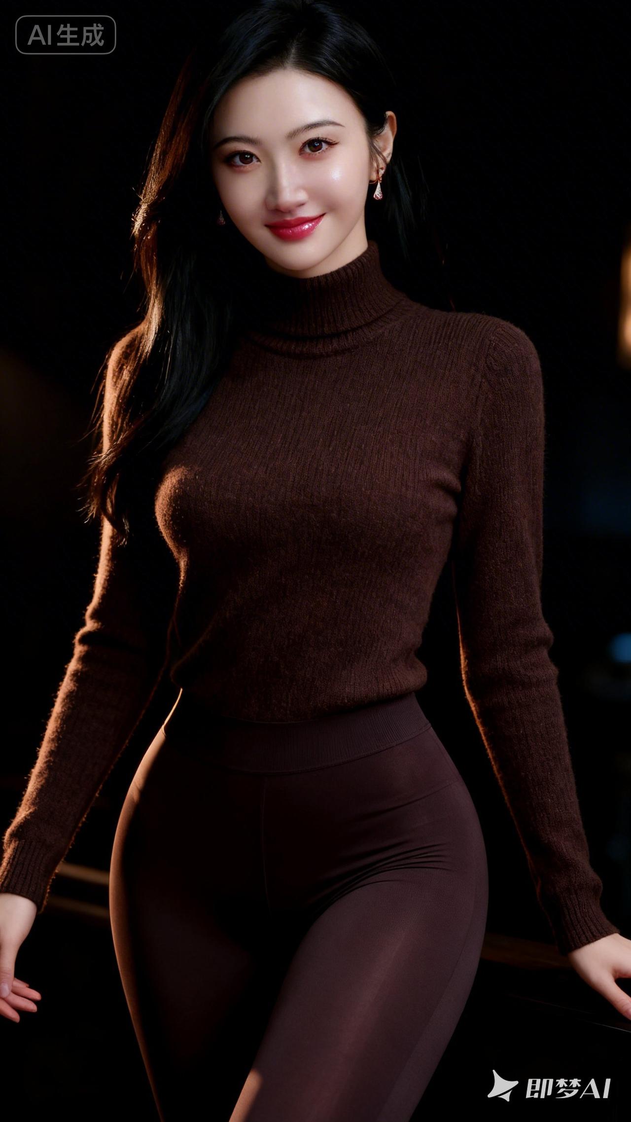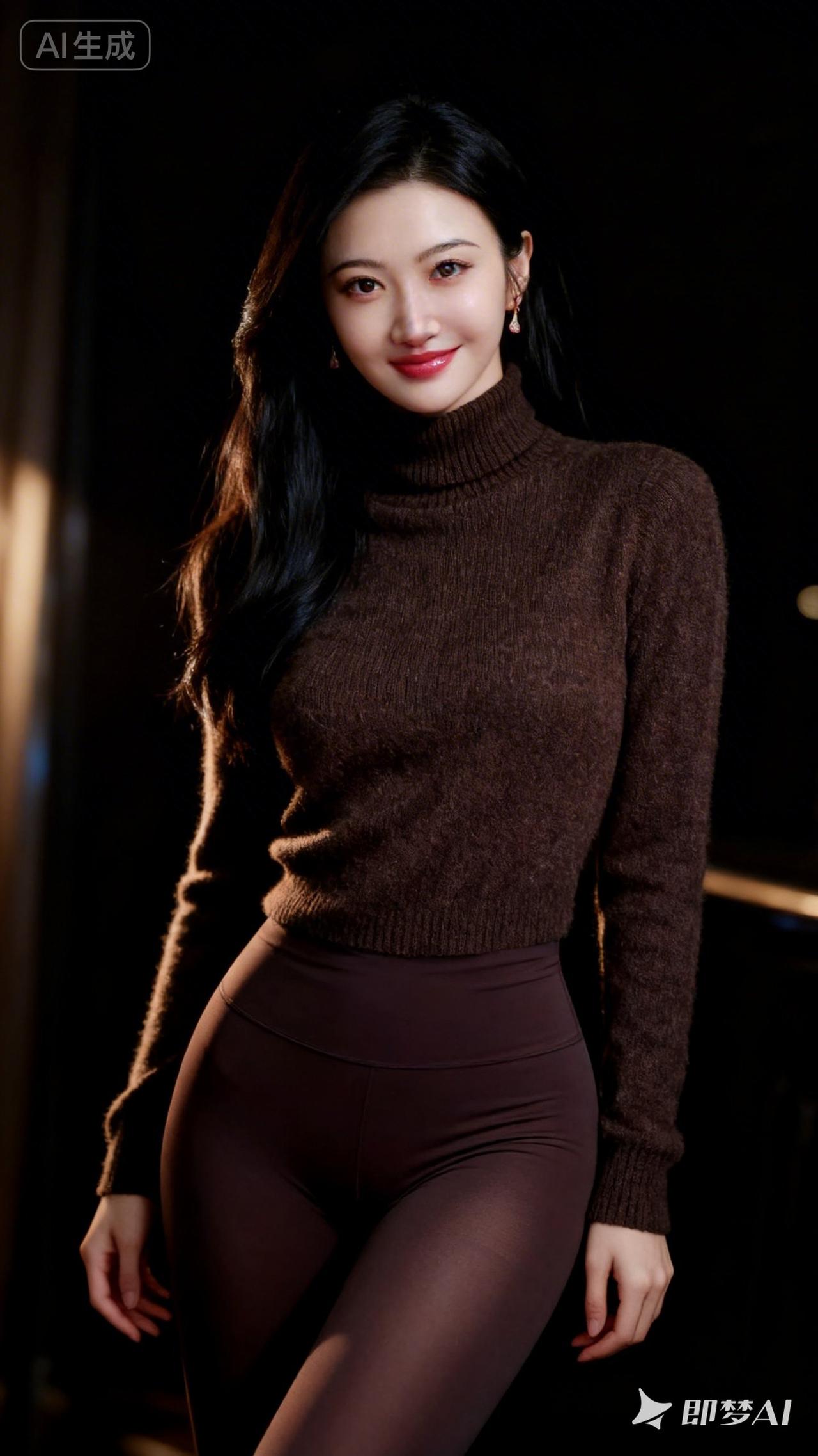 优雅气质,深棕色高领毛衣搭配紧身裤,尽显时尚魅力!💃🏻👗👠