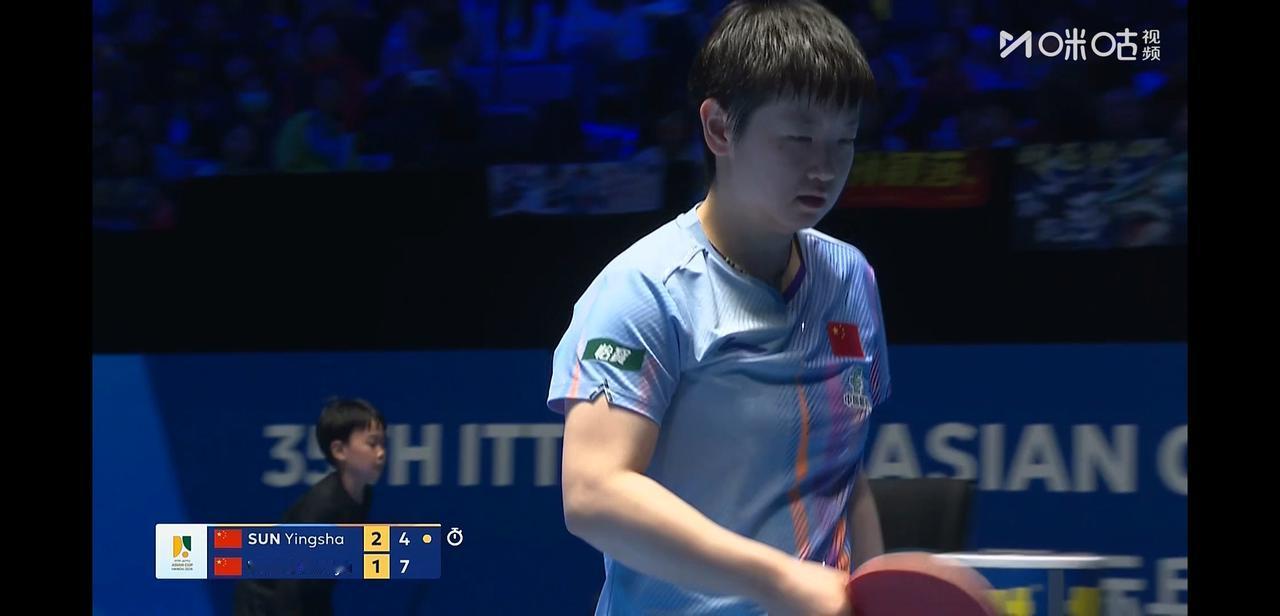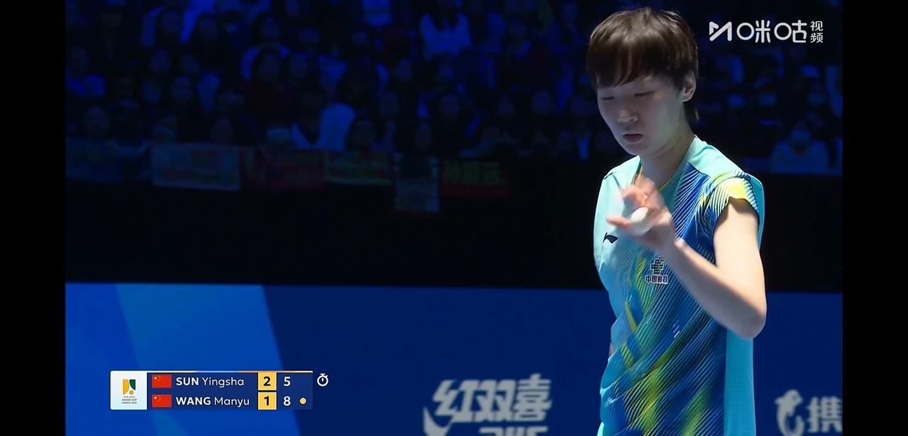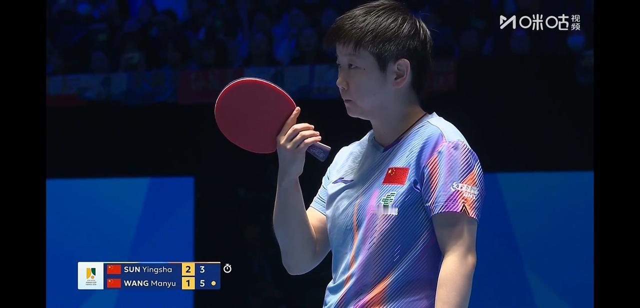 亚洲杯女单决赛, 孙颖莎vs王曼昱。 每次看到决赛场上的两个人, 都会非常激动, 不是激动其他, 而是看到两个人都竭尽全力地去打。 站在两个人战至2:2平了, 不知道今天会不会打到决胜局? 精彩!精彩! 继续加油, 继续看!
