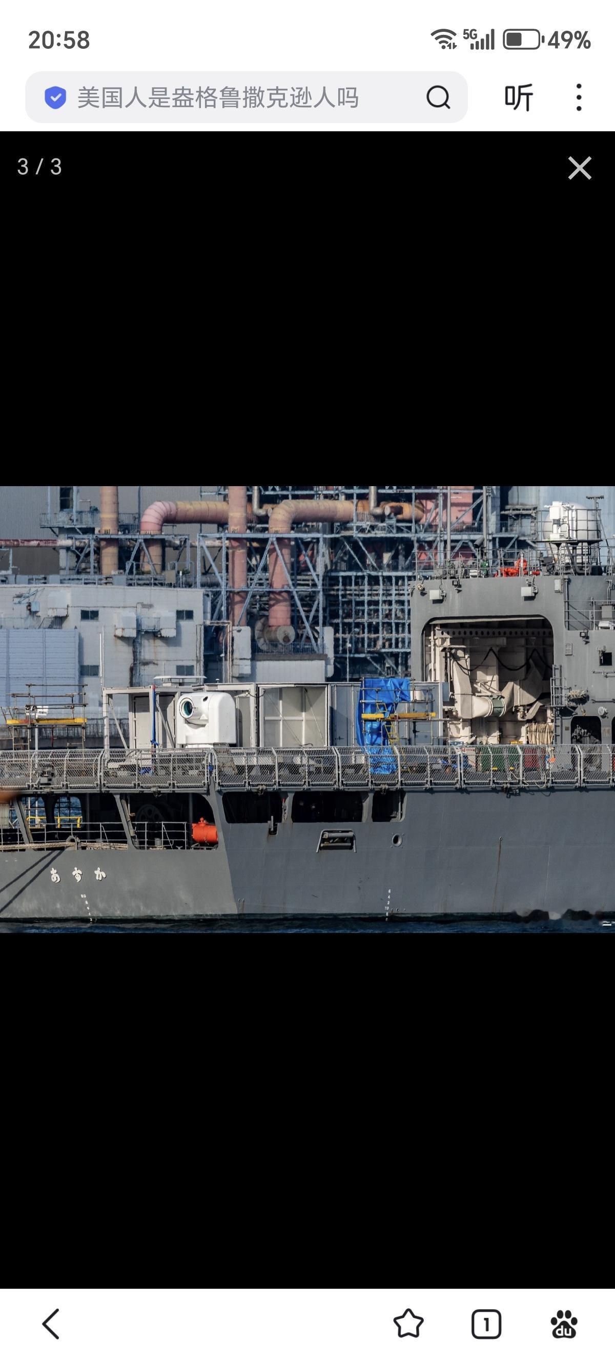 配备 100kW 高功率激光器的海自“飞鸟”号试验舰正在横须贺等待海上测试。激光器的防护罩门被多次打开和关闭。 此前安装在“飞鸟”号舰尾甲板的电磁炮已经拆除。