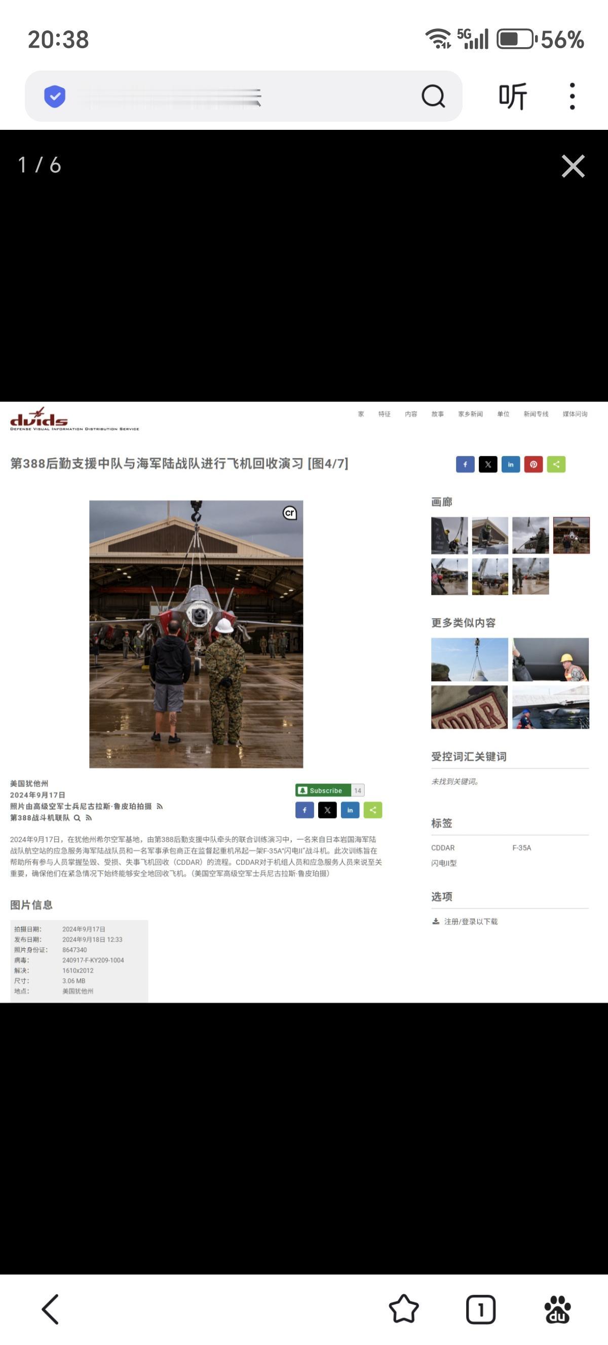 关于今天广泛流传的F-35机头“挂哑铃”的图 首先图是真图、这架飞机曾经确实是一架真正的F-35A,照片拍摄于2024年9月17日在犹他州希尔空军基地,内容是美国空军第388后勤支援中队与美国海军陆战队进行战斗机坠毁、受损或失事飞机的回收(CDDAR)流程演练 但在发布的7张图片中可以看到这架“F-35A”的编号为12-5052,同时座舱盖看着也不太像真正的作战飞机 实际上,这架“F-35A”是在2016年因起飞过程中动力系统起火而烧毁后、机体保留下来作为教具,其机头的雷达自然被拆除并更换为配重 因此笔者认为至少这几张照片并不能证明美国空军装备了未安装雷达的F-35A