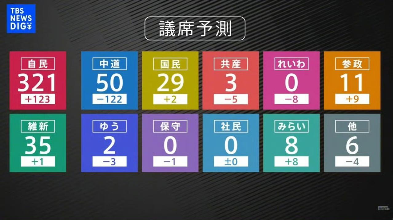 1,朝日电视台的出口民调预测 2,TBS出口民调预测得议席 自民党都将过300席 ,不要抱任何希望了!