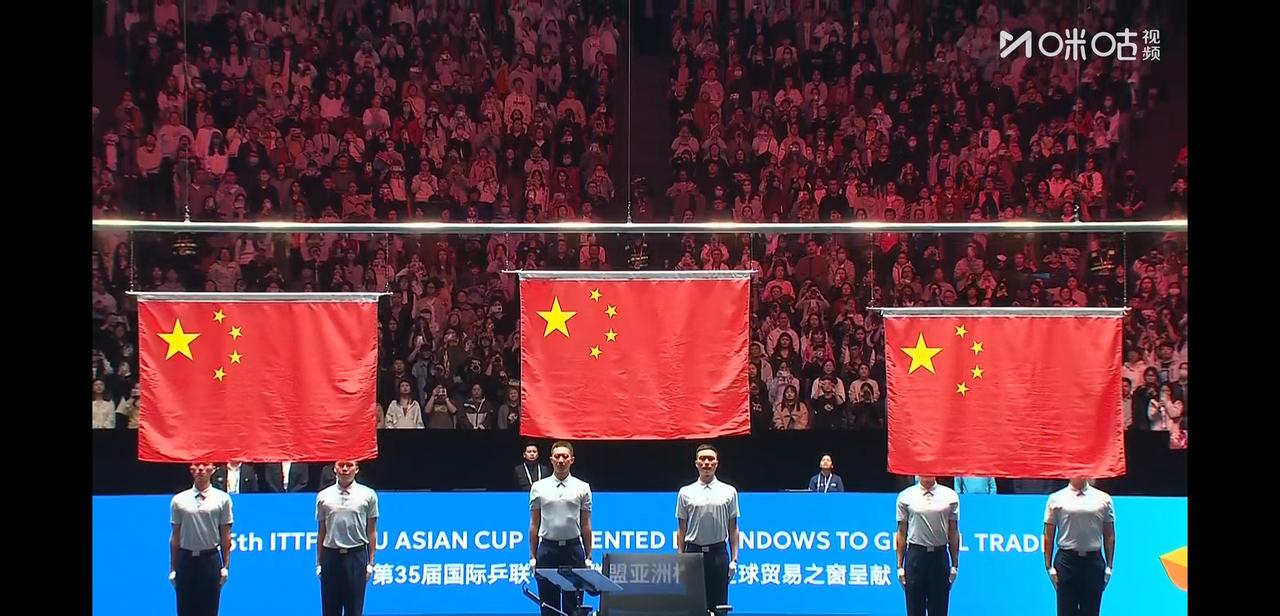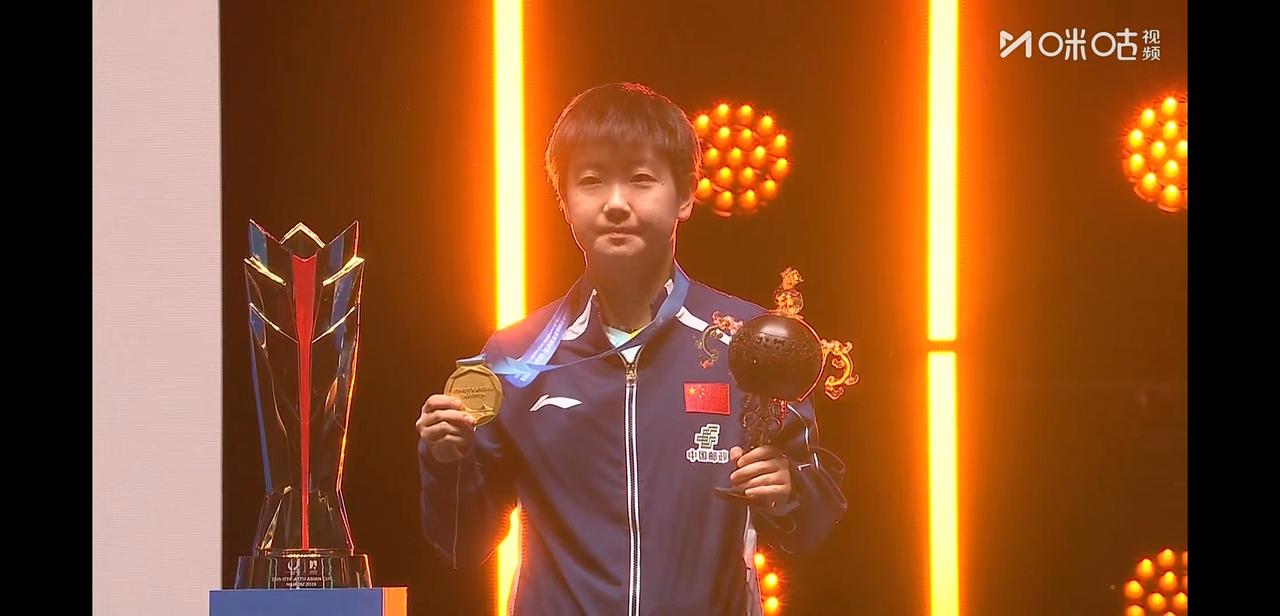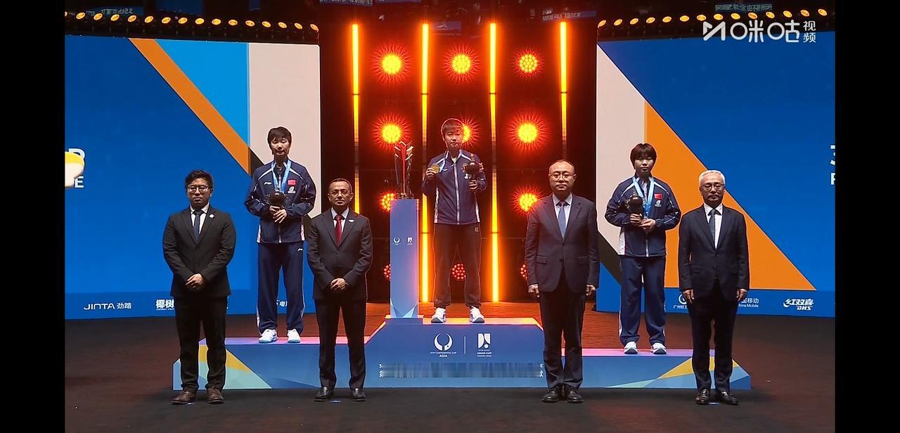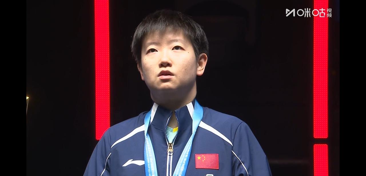 亚洲杯女单决赛结束了, 孙颖莎冠军, 王曼昱亚军, 蒯曼季军, 海口的体育馆三面五星红旗冉冉升起, 屏幕外的我也非常激动。 祝福她们中国女乒。 孙颖莎又一次站在最高领奖台上, 我看着莎莎, 莎莎看着冉冉升起的国旗, 也在随着一起唱着国歌。 这是莎莎自从香港总决赛后第一次比赛, 也是又一次拿到了冠军。 加油!你永远最棒!