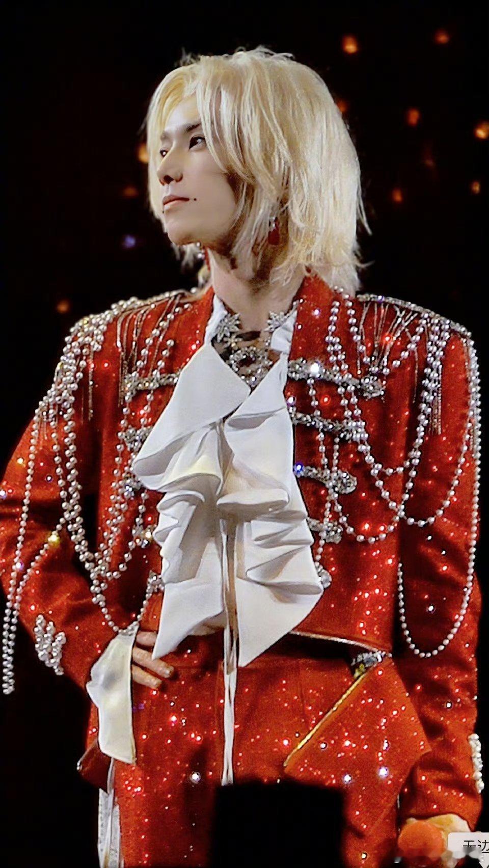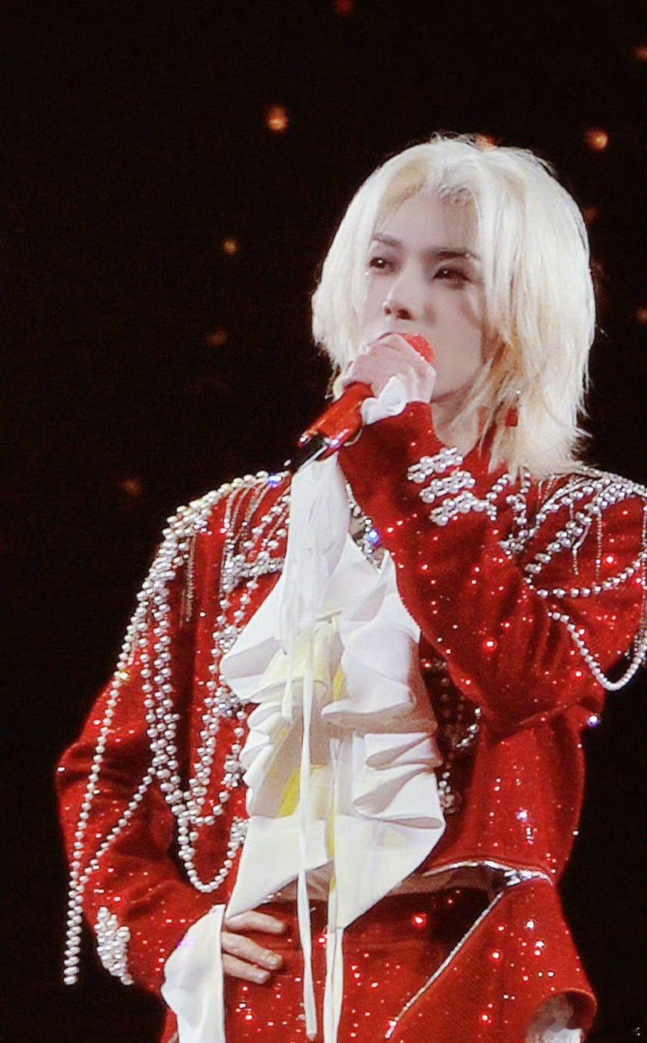 华晨宇星芒红宝石 顶级舞台美学!华晨宇星芒红宝石造型气场全开,红色西装缀满碎钻与珍珠,灯光下流光璀璨,白金狼尾添野性,又贵又飒,每一个动作都充满故事感与力量。