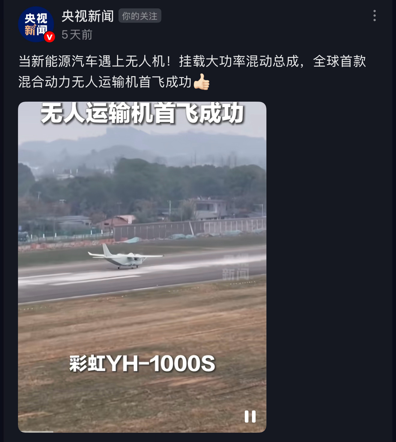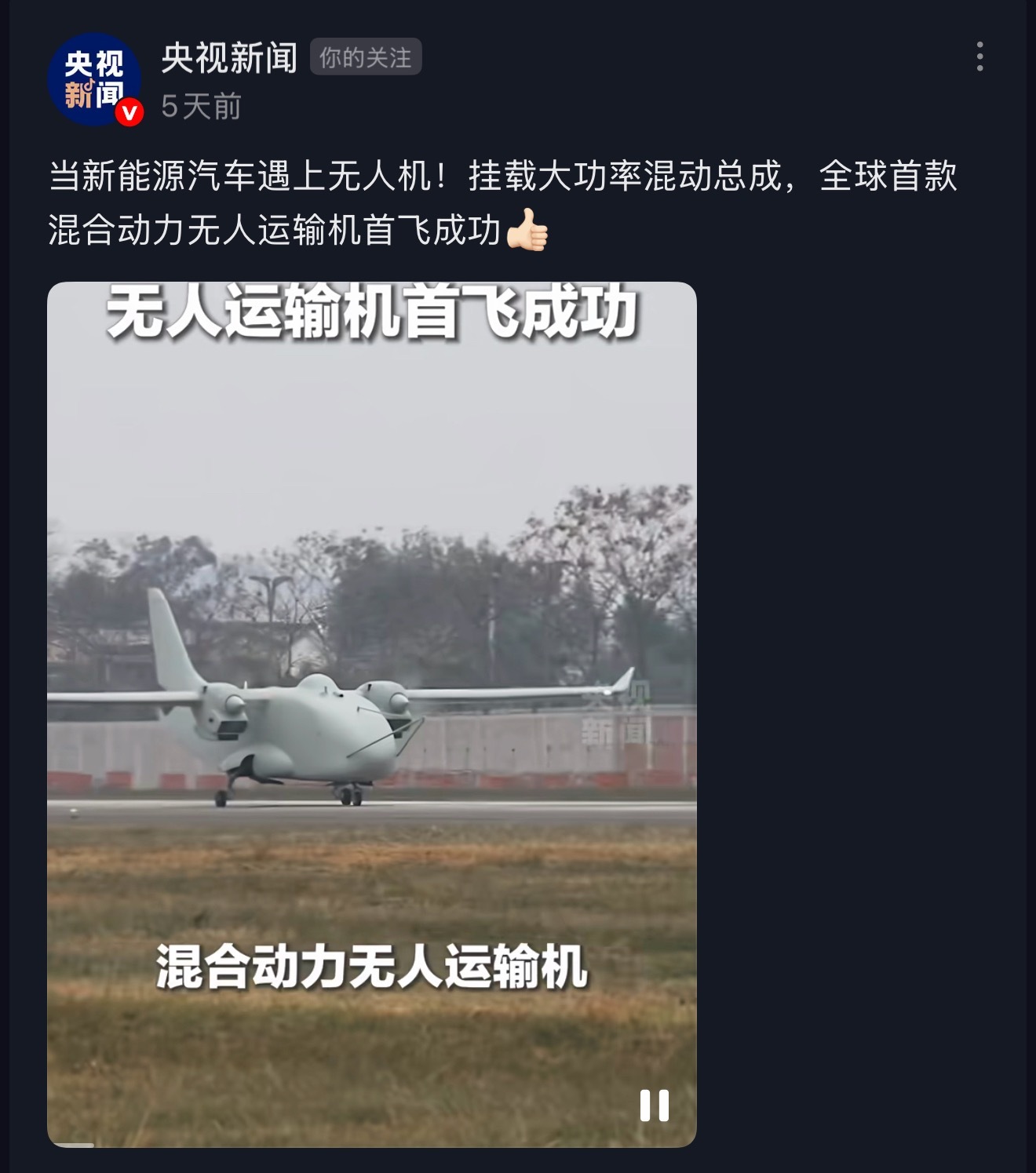 新能源汽车混动系统用在了无人运输机上,以新能源汽车的产能来看这飞机可太好生产了!