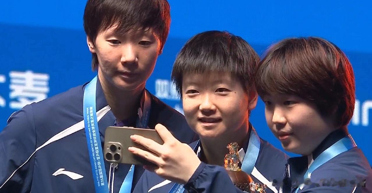 女单颁奖典礼,王曼昱有一点点不开心。 冠军自拍环节,蒯曼负责拍照,莎莎很开心,曼昱没有笑出来。 最让人感动的画面是,三面红旗同时升起,队员们同唱国歌,满满的自豪感和荣誉感。 女队太强了,其实三名队员实力在伯仲之间,都是非常有实力的队员。 今天最开心的是莎莎,香港总决赛因伤退赛,经过很长时间调整,今天站到最高领奖台。 王曼昱会有些许遗憾,没能卫冕亚洲杯女单冠军。 蒯曼做为女队小将,一路过关斩将,获得女单铜牌也是实至名归,也是自己22岁生日最好的礼物。 遗憾的是男队就没有这样的荣耀,王楚钦加油,一定要站到最高领奖台。 图片来自网络侵权可删。