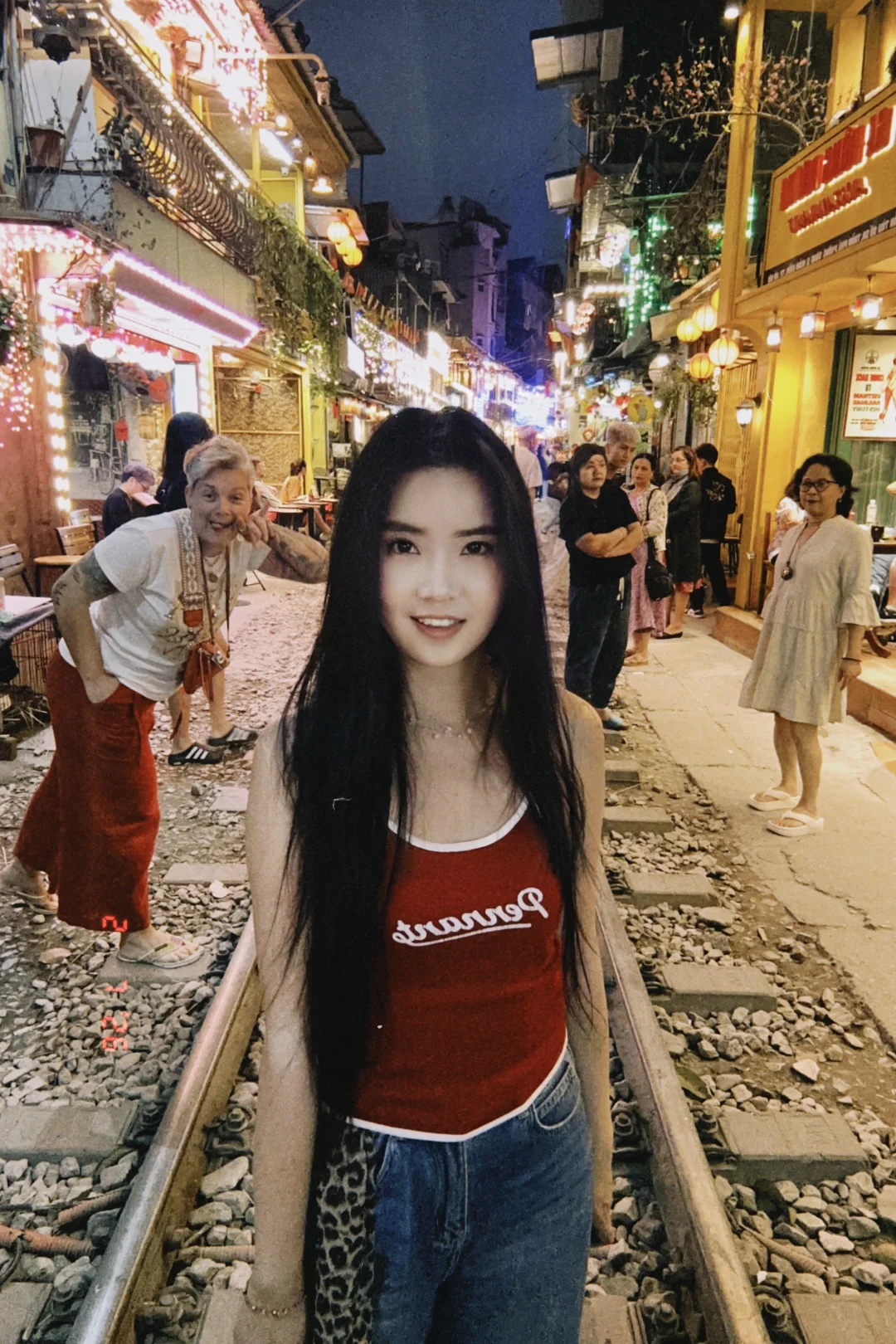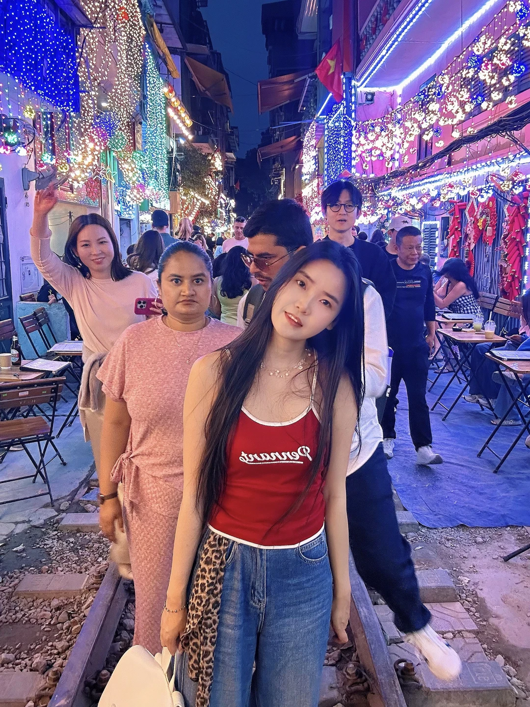 刚刚翻照片发现路人都好有趣! 本来自己拍照表情并没有很好 哇!小老外冲过来立马笑得好开心! 还有后面的姐妹也好可爱!!的打招呼👋 虽然每天都在吸尾气 每天都是霾霾的 路上全是乌泱泱一大片摩托车🏍️ 都没地方下脚 鸣笛声喇叭声轰隆隆隆的 伴随着尾气 吵的我脑瓜子疼 但我好喜欢这张照片啊啊啊!! 谁懂!!!