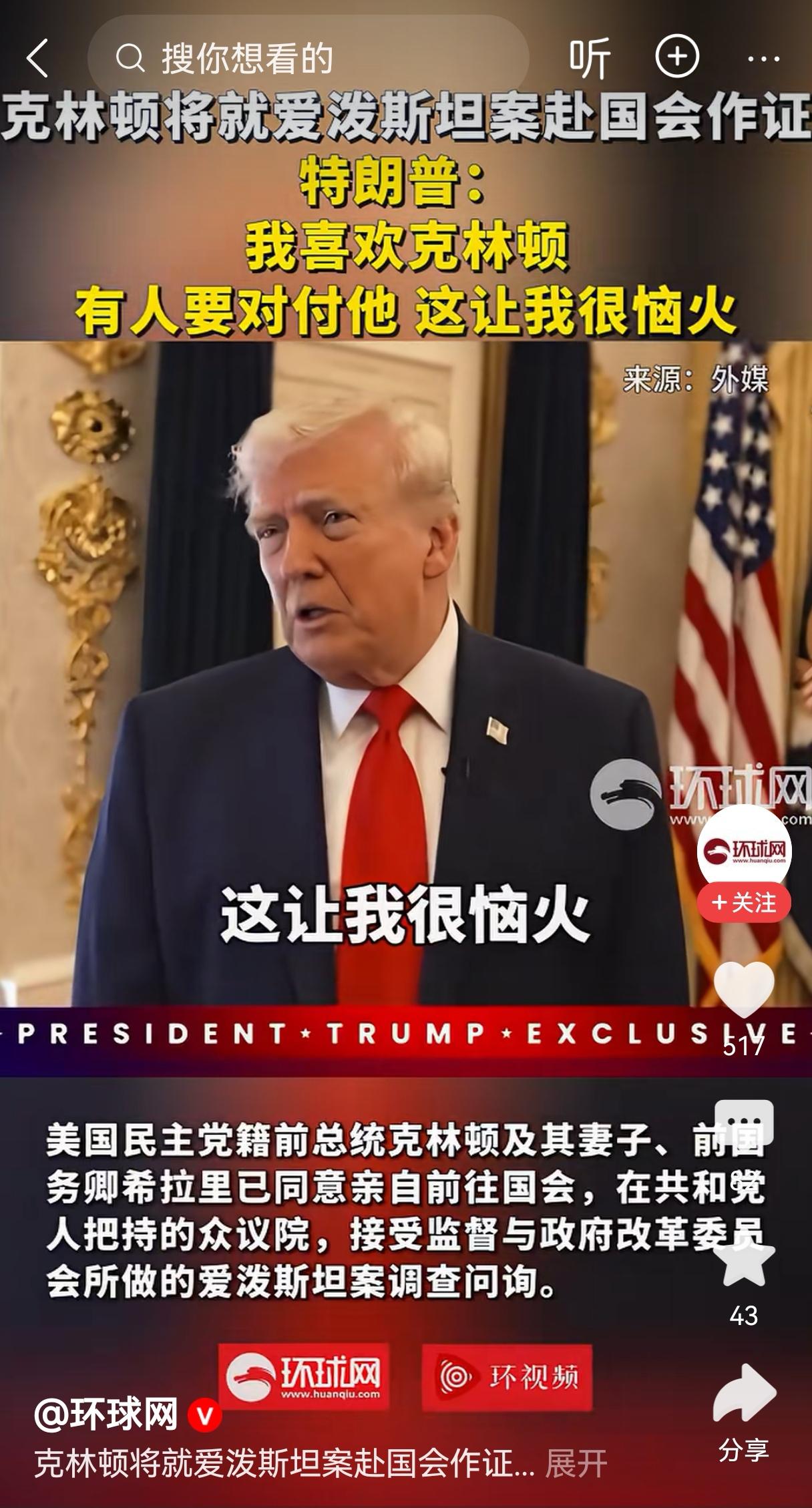 克林顿夫妇同意作证,为什么特朗普“感到恼火”?总感觉哪里怪怪的! 大家有没有同感?