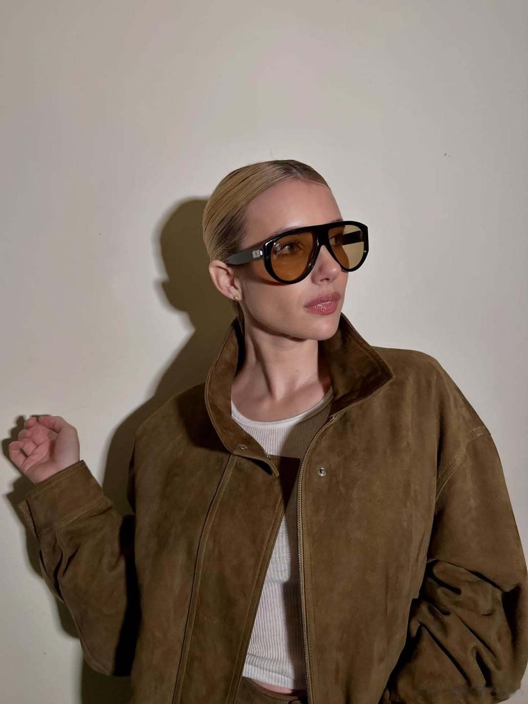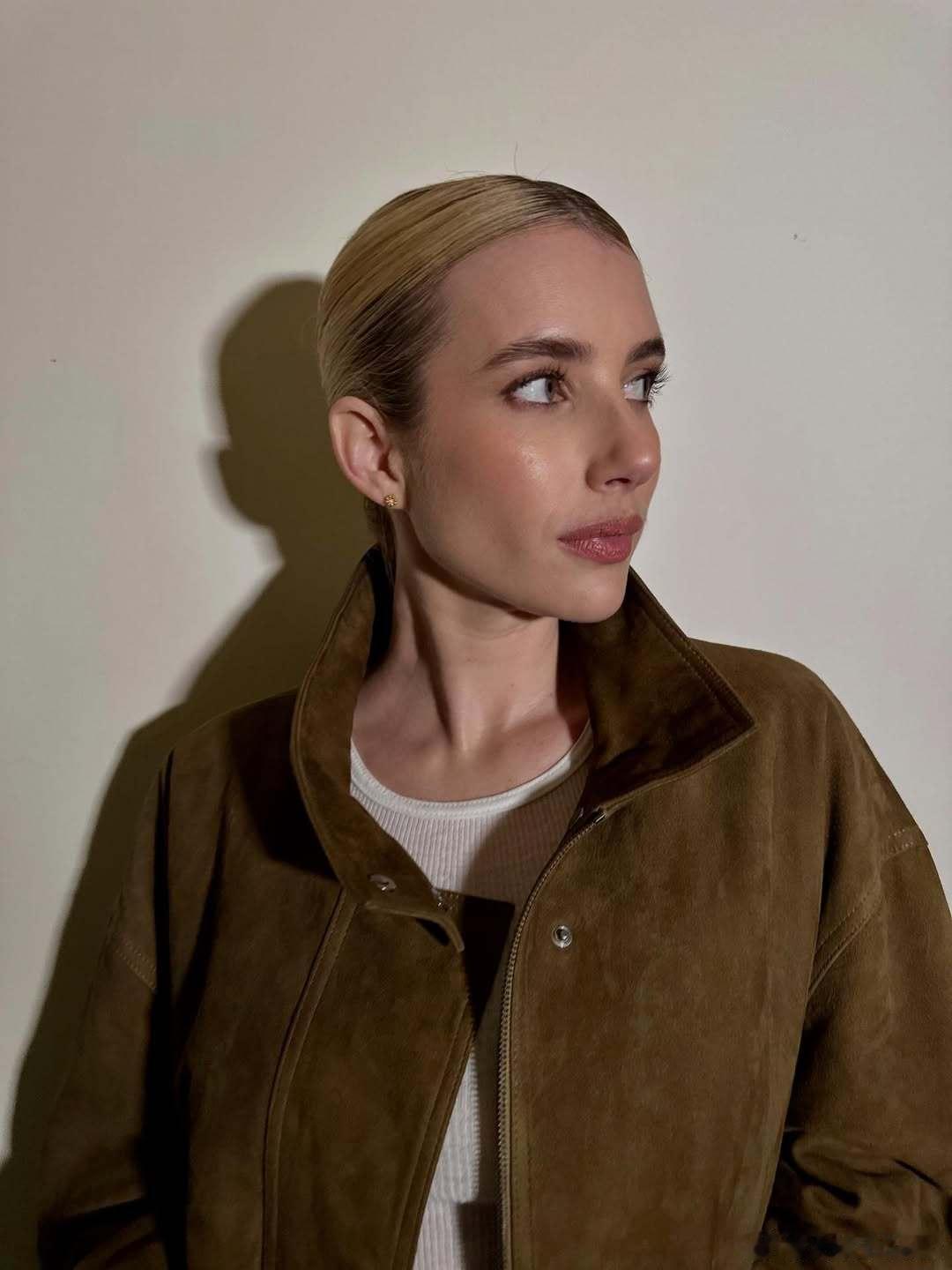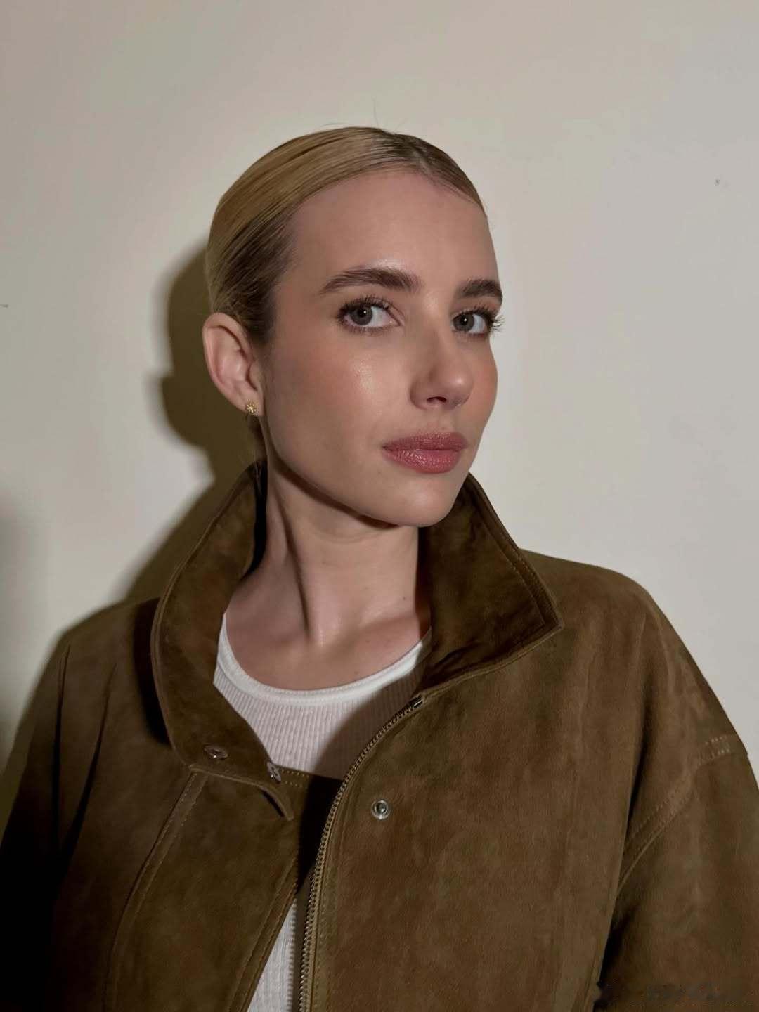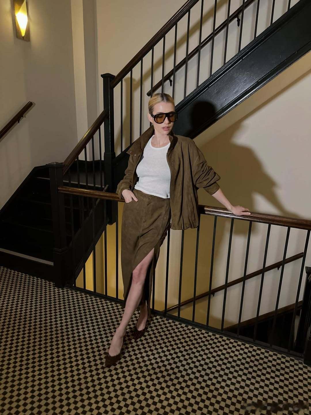 Emma Roberts艾玛罗伯茨新活动造型私照,这套也好看,侧开衩裙搭尖头鞋更显腿长了