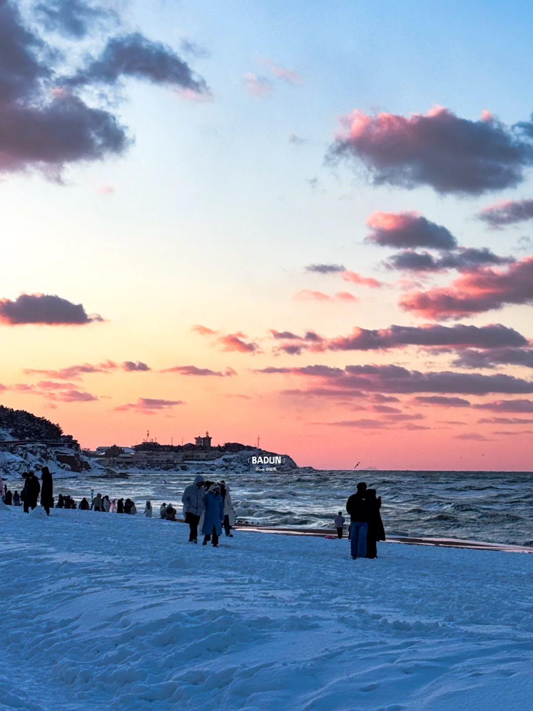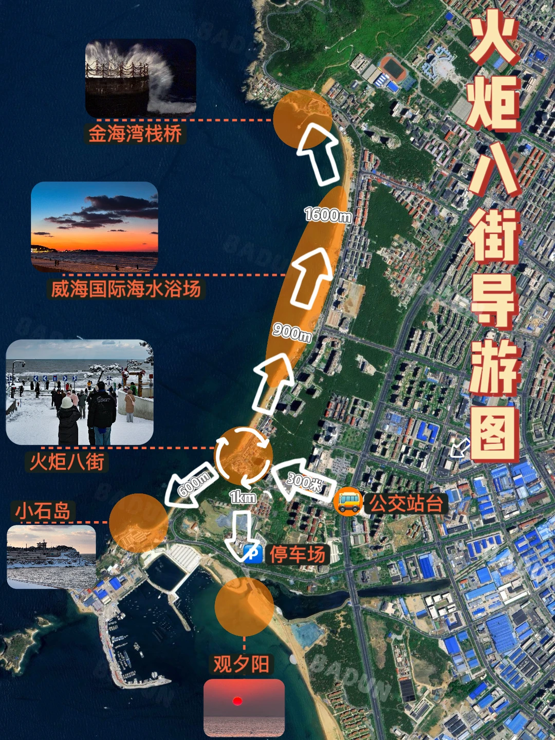 周末在火炬八街出片。 ‼️我觉得是威海最美的一段海岸线:火炬八街-小石岛-国际浴场-金海湾栈桥。 🔁整体步行约3公里,全程沿海边走 ➕提前看天气预报和潮汐时间 ✔️下午最好,海浪晚霞两不误 ➕➕路两边有饭店餐饮