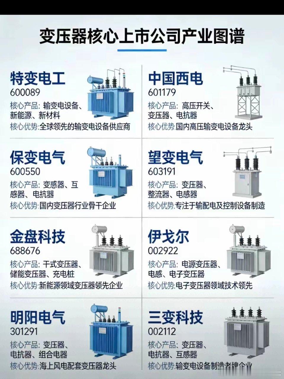 电网变压器订单排至2027年,8大核心公司当前,全球AI算力建设进入爆发期,高功率、高稳定的供电成为算力集群的“生命线”,电力设备变压器正升级为算力基础设施的关键。据央视报道我国广东、江苏等地大量变压器工厂已经处于满产的状态,其中部分面向数据中心的业务订单都排到了2027年。数据显示,2025年,我国变压器出口总值达646亿元,比2024年增长近36%。变压器概念,2025年报业绩预增最高的公司1、新特电气,25年报预增中值+192.76%2、双杰电气,25年报预增中值+128.85%3、京泉华,25年报预增中值+125.02%4、九州集团,25年报预增中值+108.26%5、震裕科技,25年报预增中值+106.74%6、保变电气,25年报预增中值+88.95%7、国网英大,25年报预增中值+60.40%8、节能环境,25年报预增中值+44.53%