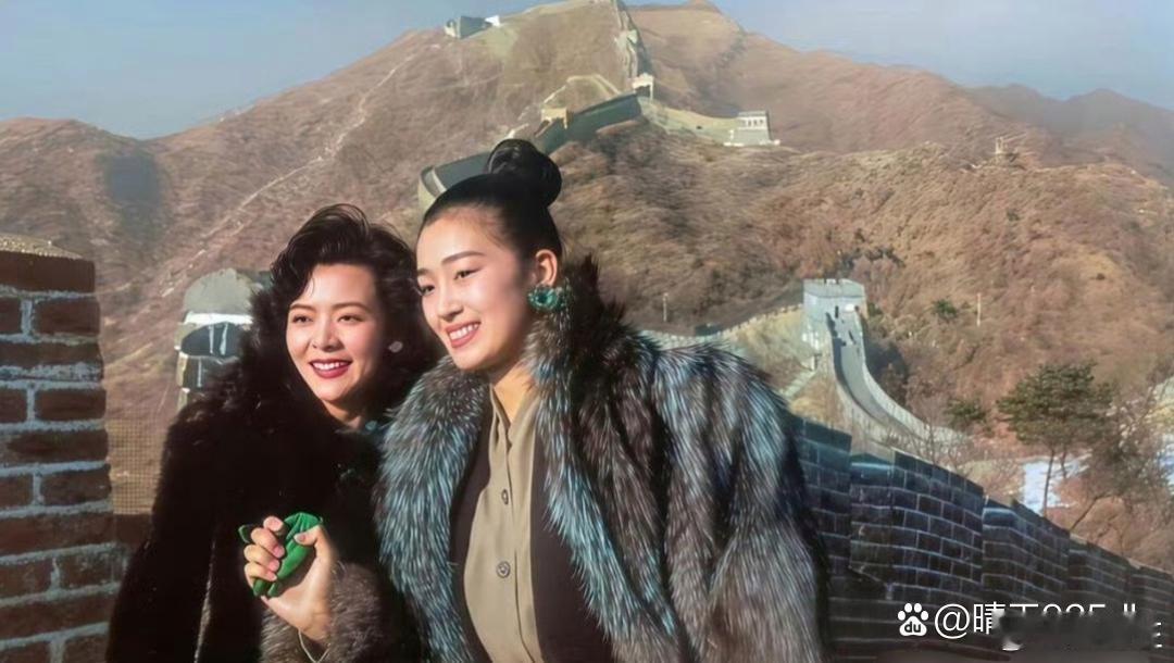 当年陈玉莲和巩俐在长城上的合影,美人在骨,放在现在看依然很美!