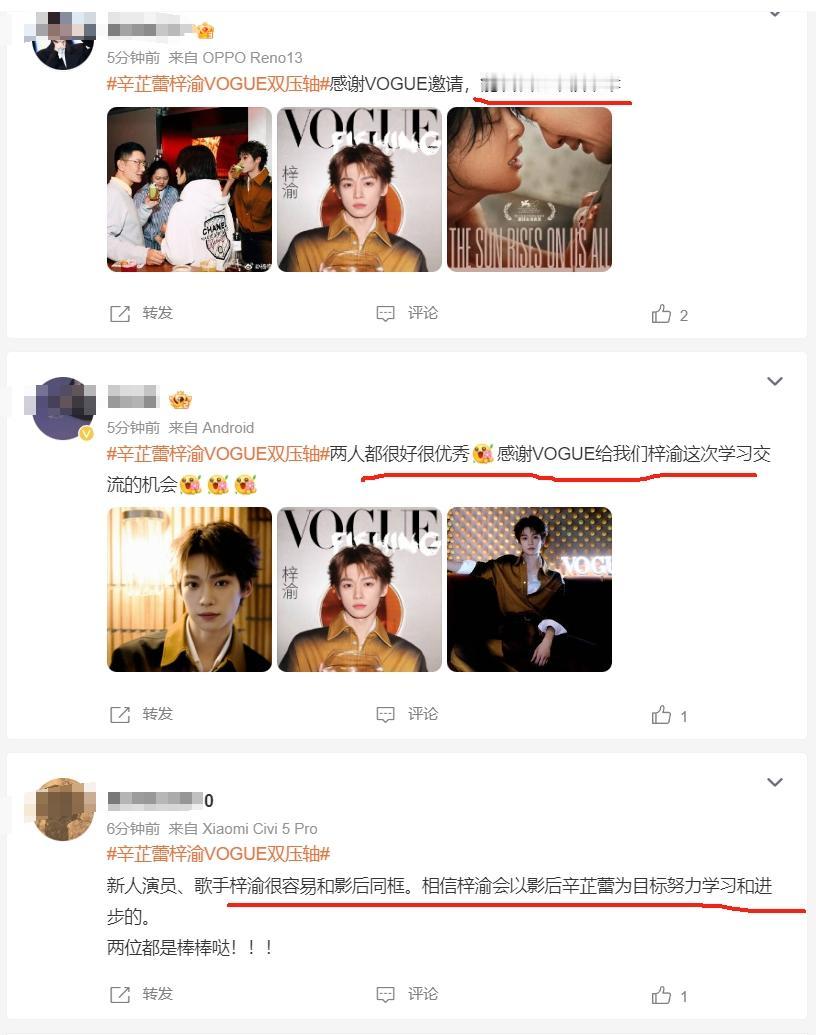 辛芷蕾这个新晋影后真的太好欺负了! 微博之夜独C,热搜却被买成双压轴,参加vogue活动,又被买成和梓渝双压轴,不过梓渝的大部分粉丝倒是拒绝这个热搜,说自家偶像还是新人,很荣幸能和威尼斯影后同框学习,希望某些粉丝别来挑事,热搜原本是想给辛芷蕾按一个爱抢C位的热搜,但梓渝家粉丝没上当,不过辛芷蕾粉丝撕了自家工作室,嫌弃他们不干活,让辛芷蕾C位压轴变成双C,双完你的双你的,拉低了影后咖位,辛芷蕾工作室为了安抚粉丝已经开始取证告黑。