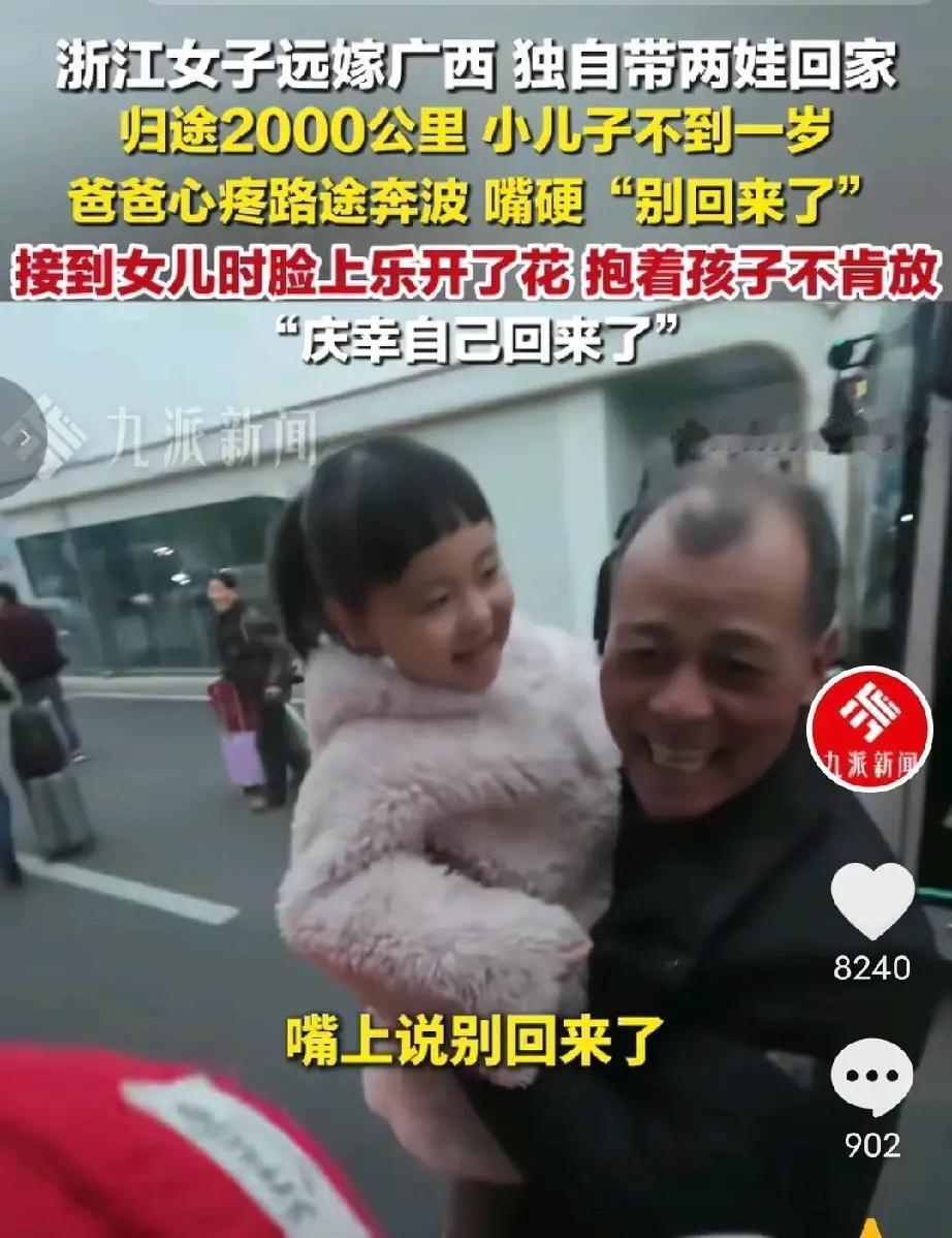 “别回来了,太折腾!”60岁老父亲嘴上嫌弃,却在车站笑出了满脸褶子,这一幕看哭无数人! 2月6日,浙江舟山,熙熙攘攘的人群中,一位满头银发的老人焦急地在出站口张望,眼神里写满了期待。就在不久前,他还在电话里对着那头的女儿“发火”:“路这么远,别回来了!” 你看那老人,双手背在身后,却不自觉地攥着衣角,脚尖微微踮起,视线在来来往往的人群里反复搜寻。女儿推着行李箱出现的那一刻,他脸上的焦急瞬间化开,眼角的皱纹挤成了沟壑,嘴角咧到耳根,快步上前就去抢行李箱的拉杆,嘴里还念叨着“说了别来别来,怎么还是跑回来了”,语气里哪里有半分嫌弃,全是藏不住的欢喜。 这种“口是心非”,分明是父母们最统一的“套路”啊!我妈去年也是这样,我跟她说春节要回去,她在电话里连连摆手,说“车票难买、路上堵,不如在城里清静”,结果等我到家,发现冰箱里塞满了我爱吃的腊肉、香肠,阳台上晒着我小时候盖惯的厚棉被,连我随口提过的某款零食,都整整齐齐摆了一抽屉。父母的嫌弃,从来都不是真的拒绝,而是怕子女路上受累,怕来回奔波耽误工作,这份藏在“狠话”里的心疼,只有为人子女的,才能读懂背后的柔软。 浙江舟山的这位老父亲,大概率也是如此。舟山群岛的冬季不算温暖,2月的海风还带着刺骨的凉意,他却早早站在出站口等候,想必是算着女儿的车次,提前很久就出门了。他嘴上说“太折腾”,心里却比谁都盼着团圆——盼着看看女儿是不是瘦了,盼着听听她讲城里的趣事,盼着一家人围坐在一起,吃一顿热热闹闹的家常菜。这种矛盾的心情,是无数中国式父母的缩影,他们不擅长表达爱意,便把牵挂藏在“嫌弃”里,把期盼藏在默默的等待中。 2026年春运数据显示,今年跨省返乡的旅客中,有近40%的人单程车程超过8小时,很多人要换乘多种交通工具才能到家。这些奔波的身影背后,是父母的期盼,也是子女的牵挂。就像舟山这位女儿,明明知道父亲嘴上会“嫌弃”,还是义无反顾地踏上归途,她懂父亲的“口是心非”,更懂那份藏在话语背后的思念。亲情从来都是双向奔赴,父母用“嫌弃”掩饰心疼,子女用陪伴回应牵挂,这份默契,让千里迢迢的奔波都变得有意义。 想起前几天刷到的一个采访,一位常年在外工作的年轻人说,每次打电话回家,父母都说“不用惦记我们”,可视频里看到他们日渐花白的头发、蹒跚的脚步,还是忍不住想立刻回去。父母的“逞强”,往往是怕给子女添麻烦,他们宁愿自己扛下所有,也不愿让子女分心。舟山这位老父亲,或许也是怕女儿路上辛苦,怕她为了回家耽误工作,才说出“别回来了”的狠话,可心里的期盼,却在出站口的张望中暴露无遗。 民政部2026年发布的家庭关系调研显示,超过65%的老年人在春节前会提前半个月准备子女爱吃的食物,近80%的父母会反复确认子女的返乡行程。这些数据背后,是父母们沉甸甸的爱。他们或许不会说“我想你”,却会用最实在的行动表达牵挂:提前打扫好房间,备好合口的饭菜,站在寒风里等候,哪怕嘴上说着“太折腾”,脸上的笑容却骗不了人。 这种“口是心非”的爱,没有华丽的辞藻,却最能触动人心。它不像年轻人的爱情那样热烈直白,却像陈年的老酒,越品越浓。父母这一辈子,总是把最好的都留给子女,把牵挂藏在最深处,用“嫌弃”当铠甲,保护着子女,也守护着那份最纯粹的亲情。 我们总说长大后要好好孝顺父母,可孝顺从来不是给多少钱、买多少东西,而是读懂他们的“口是心非”,回应他们的默默期盼。或许我们能做的,就是多一点耐心,多一点陪伴,哪怕路程再远,也要常回家看看。因为对父母来说,再多的“嫌弃”,也抵不过一句“我回来了”;再远的距离,也挡不住一家人团圆的渴望。 各位读者你们怎么看?欢迎在评论区讨论。