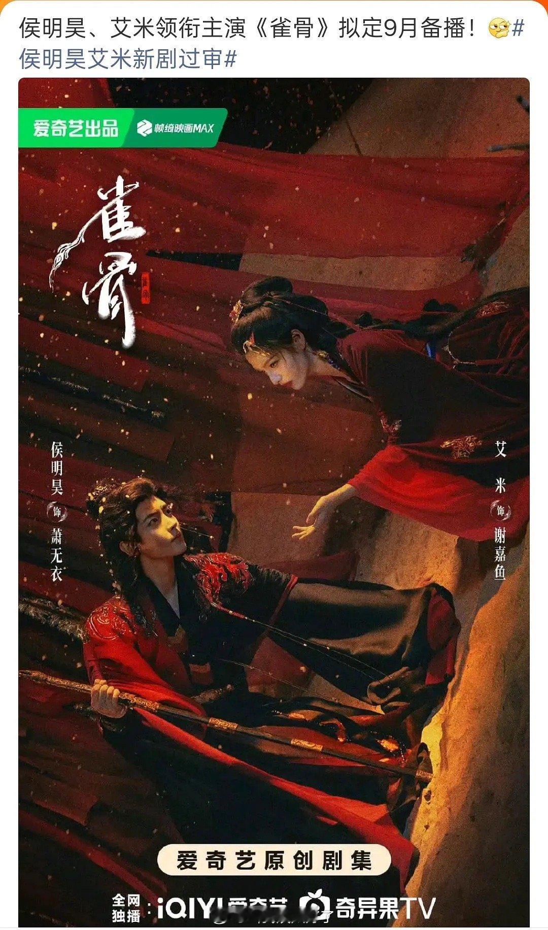 网传侯明昊、艾米领衔主演《雀骨》拟定9月备播,已经过审的剧居然要压半年吗?