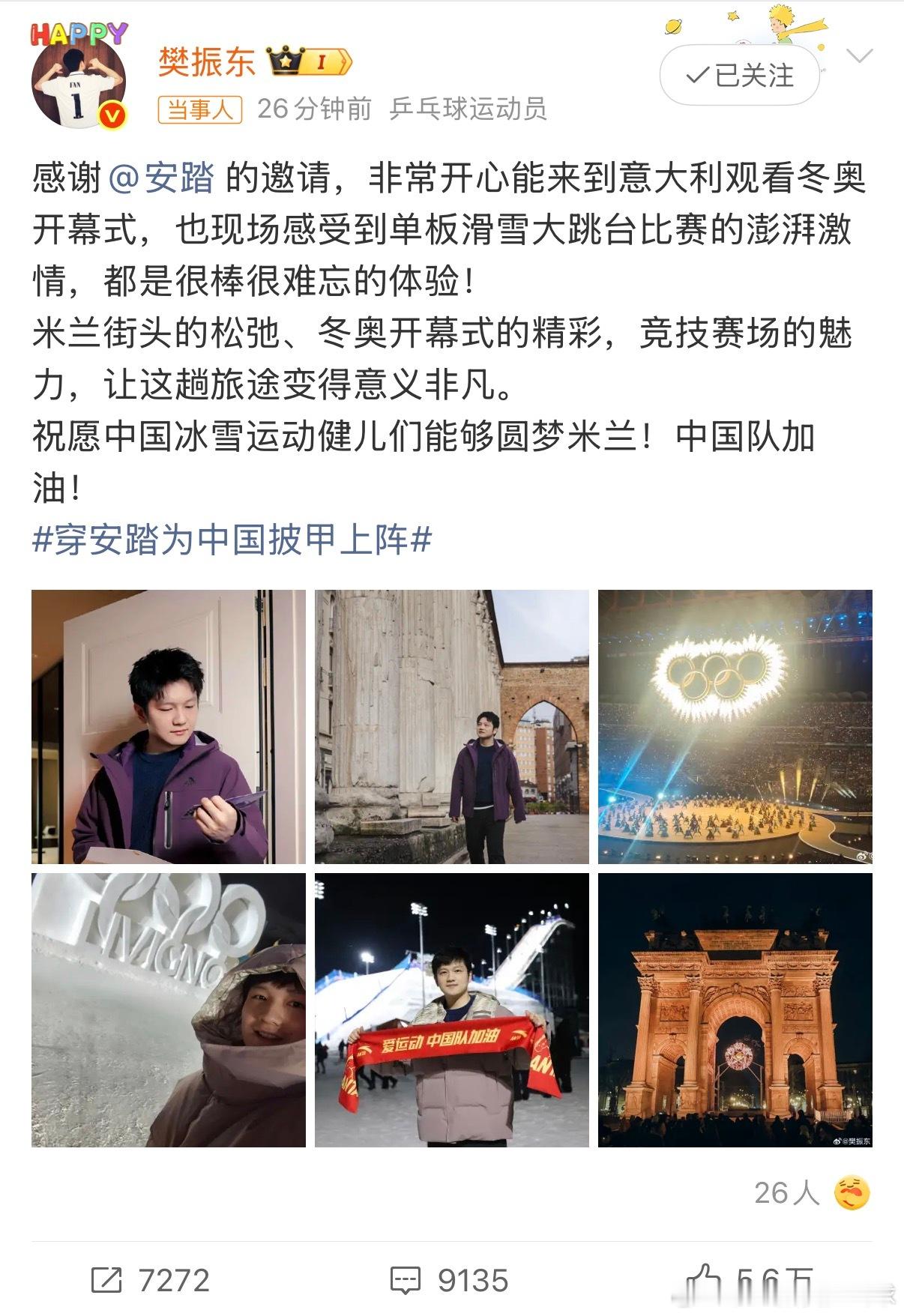 樊振东现身意大利看冬奥从乒乓球台到冰雪赛场,樊振东现身米兰为冬奥加油,真的太有画