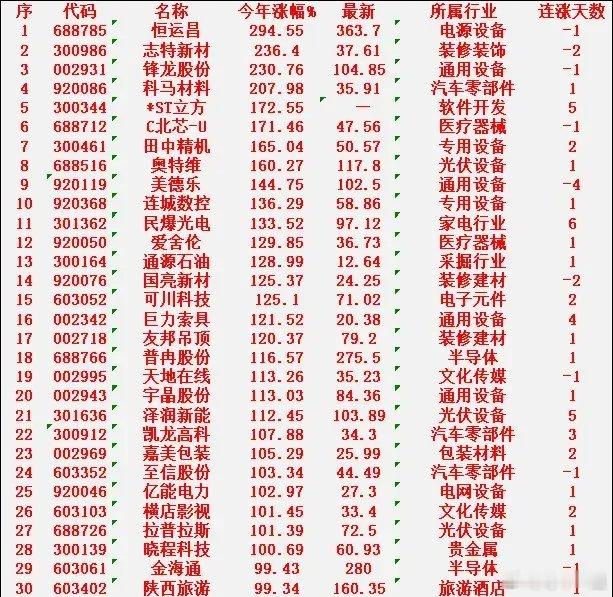 2026年以来,涨幅最大30名一览!