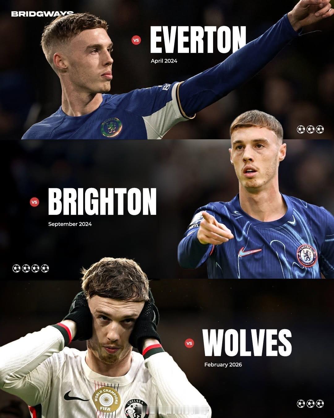科尔·帕尔默成为英超历史上第一位在上半场上演三次帽子戏法的球员。足球英超切尔西
