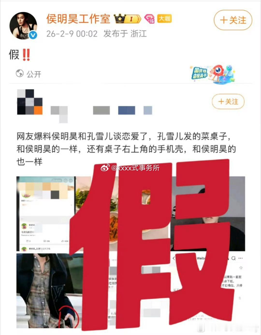 侯明昊工作室辟谣和孔雪儿的恋情,有点子离谱了,又是什么边角料的巧合