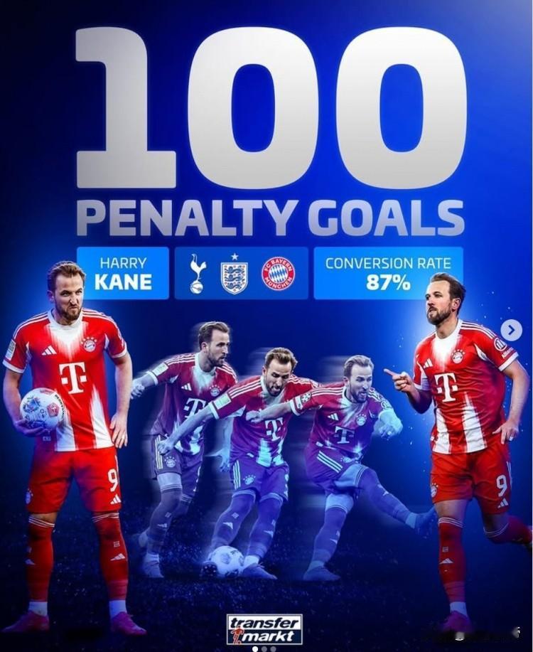 点球也是球,凯恩职业生涯打进了第100粒点球! 在拜仁5-1大胜霍芬海姆的比赛