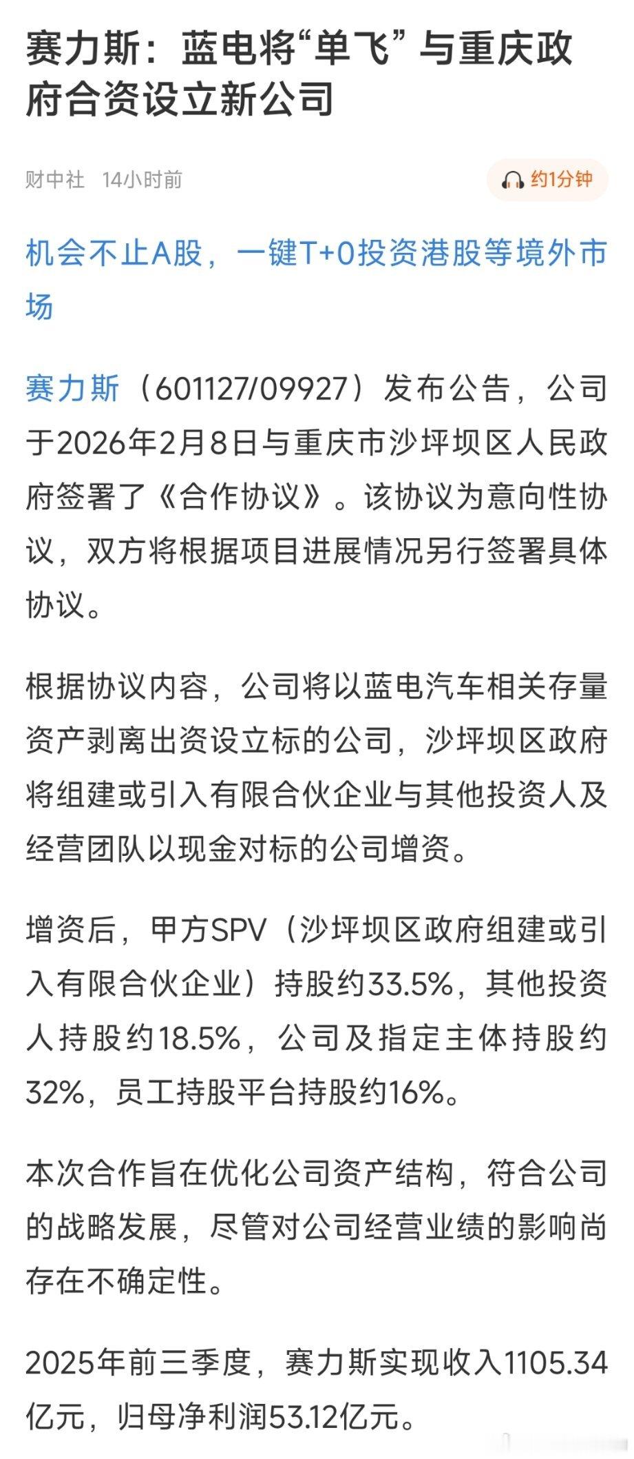 赛力斯拟剥离重要资产短期利好赛力斯,甩掉亏损包袱,有政府托底中长期看不利,问界含华量被稀释,消费者认知也在成熟,问界想要持续增长和高利润很难
