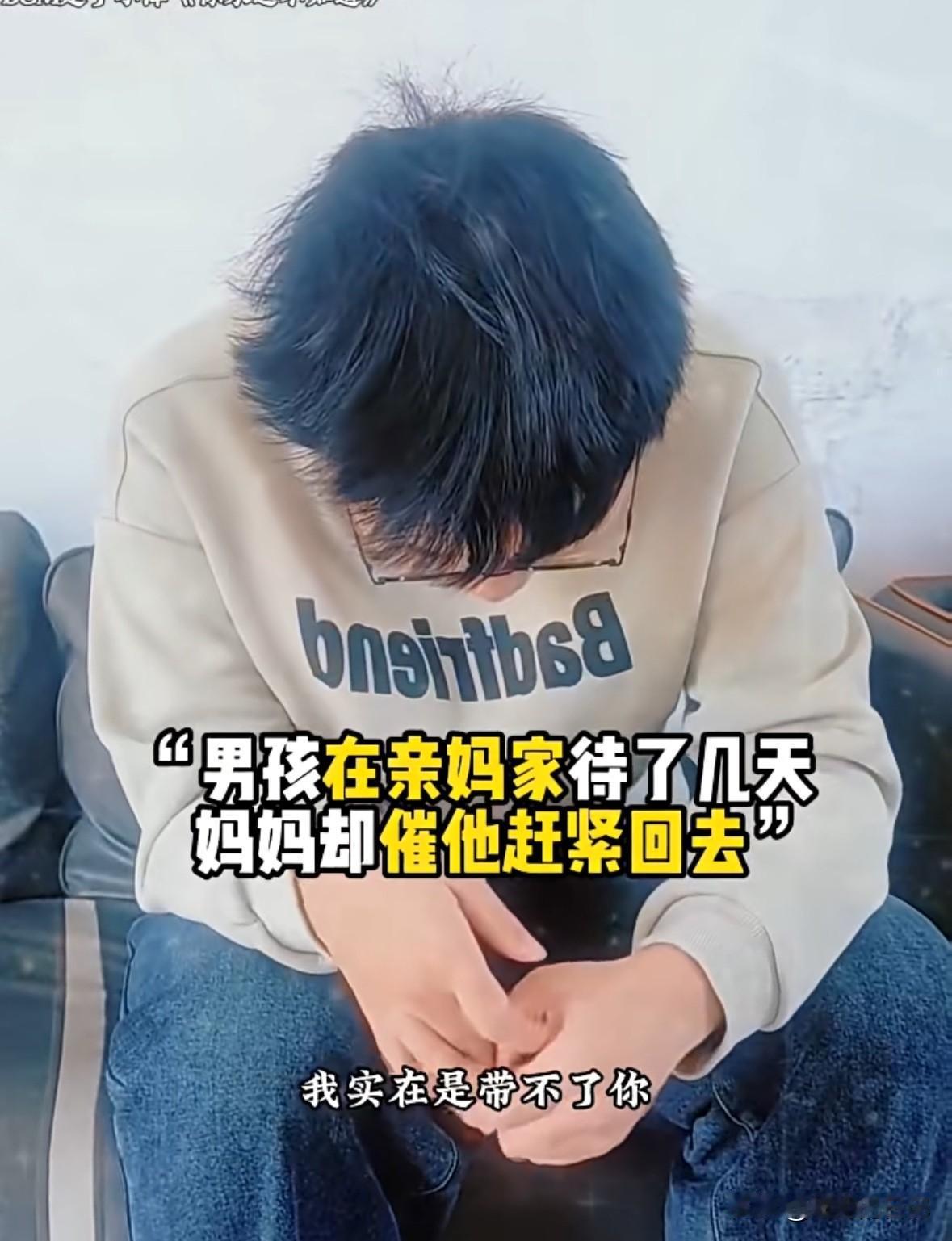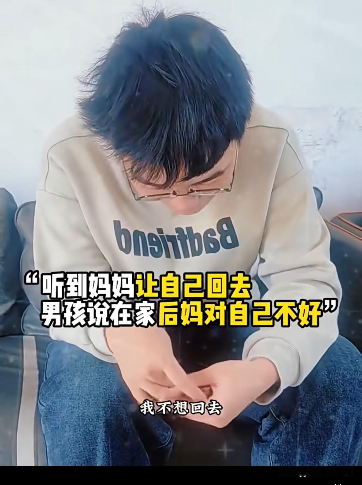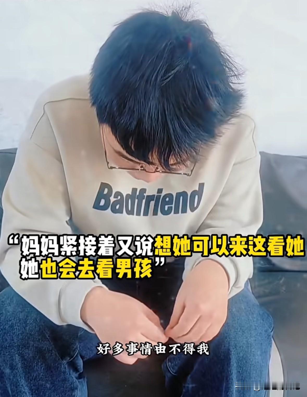 男孩儿父母离婚,因为后妈对自己不好,来到亲生母亲家,母亲告诉他“你在我这里住几天就回去吧” 男孩说“我爸爸找的阿姨对我不好”, 男孩妈妈说所“我知道你想跟我在一起,但是我养不了你,我也结婚了,有些事情由不得我,你回去要听爷爷奶奶话,听爸爸话,听阿姨的话”, 男孩儿始终低垂着头,最后回了一句“好”,感觉那么的无助。 我有时候就在想,如果我离婚再嫁,那个男人容不下我儿子,我是绝对不会嫁的。自己儿子,怎么忍心放在别的女人身边,而且那个女人对孩子又不好。自己有啥不得已的苦衷,养不了自己儿子呢。 实际离婚大人解脱了,苦的就是孩子。