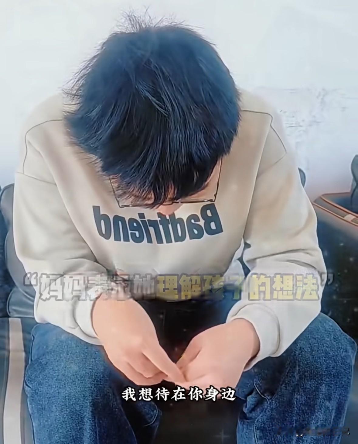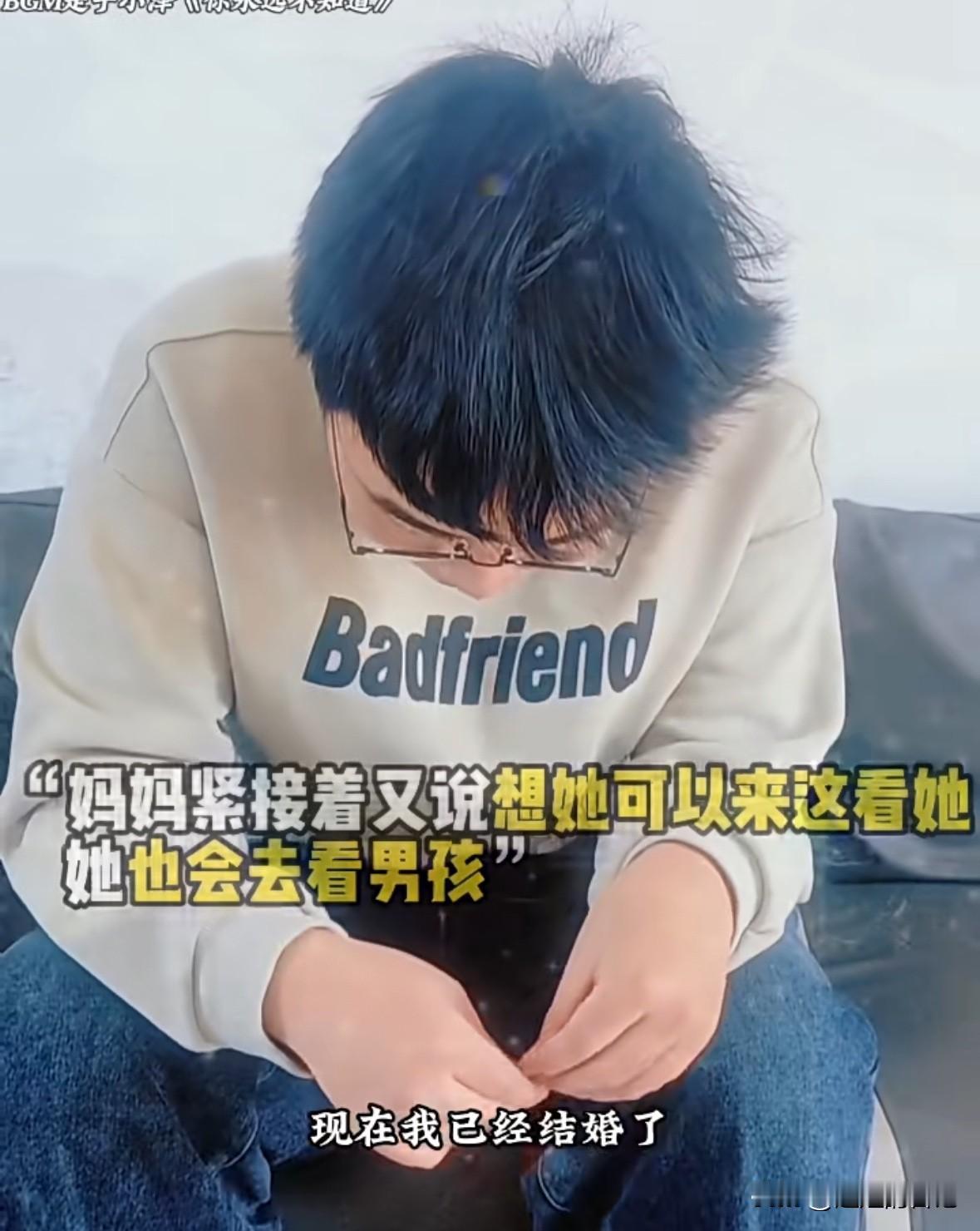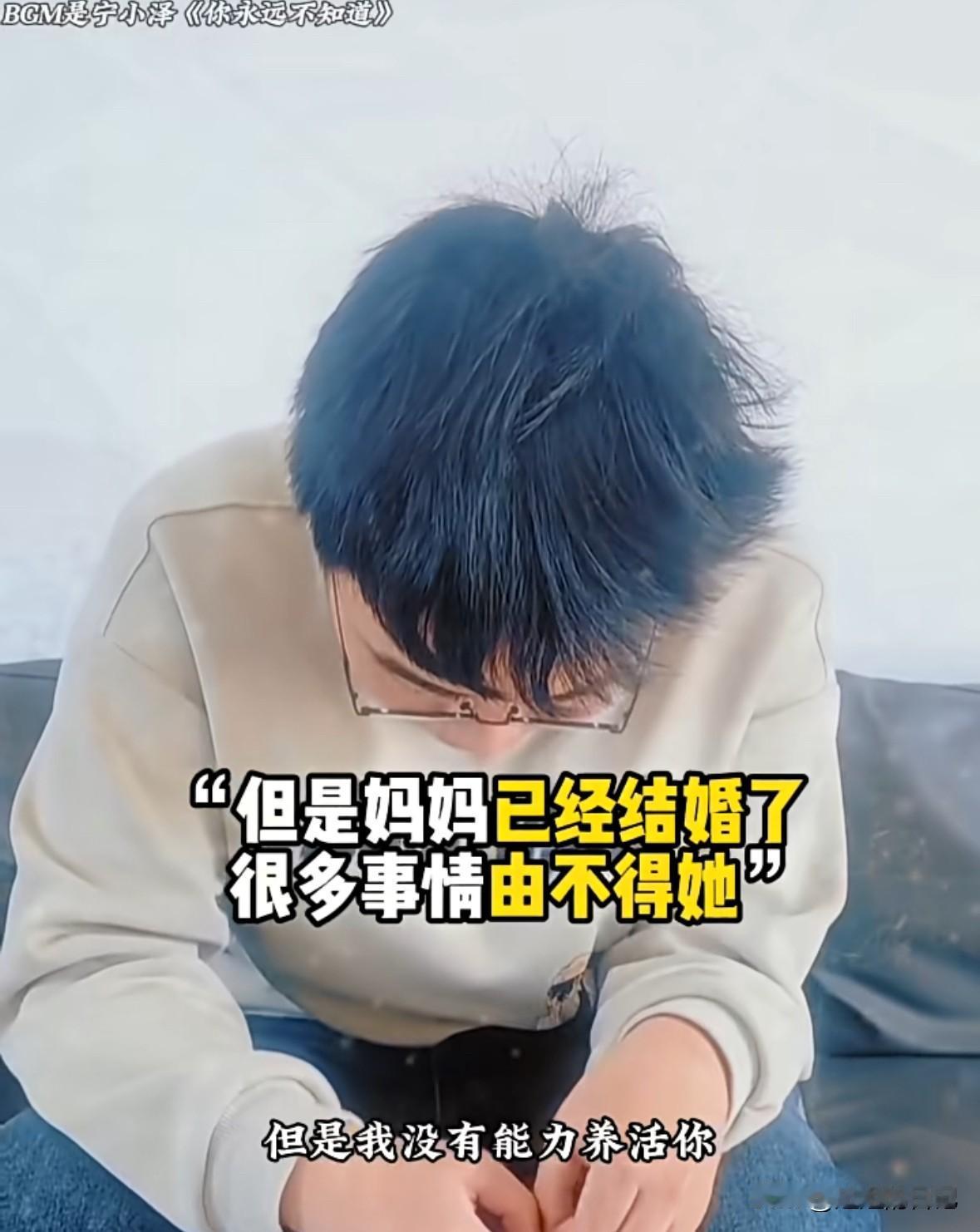 男孩儿父母离婚,因为后妈对自己不好,来到亲生母亲家,母亲告诉他“你在我这里住几天就回去吧” 男孩说“我爸爸找的阿姨对我不好”, 男孩妈妈说所“我知道你想跟我在一起,但是我养不了你,我也结婚了,有些事情由不得我,你回去要听爷爷奶奶话,听爸爸话,听阿姨的话”, 男孩儿始终低垂着头,最后回了一句“好”,感觉那么的无助。 我有时候就在想,如果我离婚再嫁,那个男人容不下我儿子,我是绝对不会嫁的。自己儿子,怎么忍心放在别的女人身边,而且那个女人对孩子又不好。自己有啥不得已的苦衷,养不了自己儿子呢。 实际离婚大人解脱了,苦的就是孩子。
