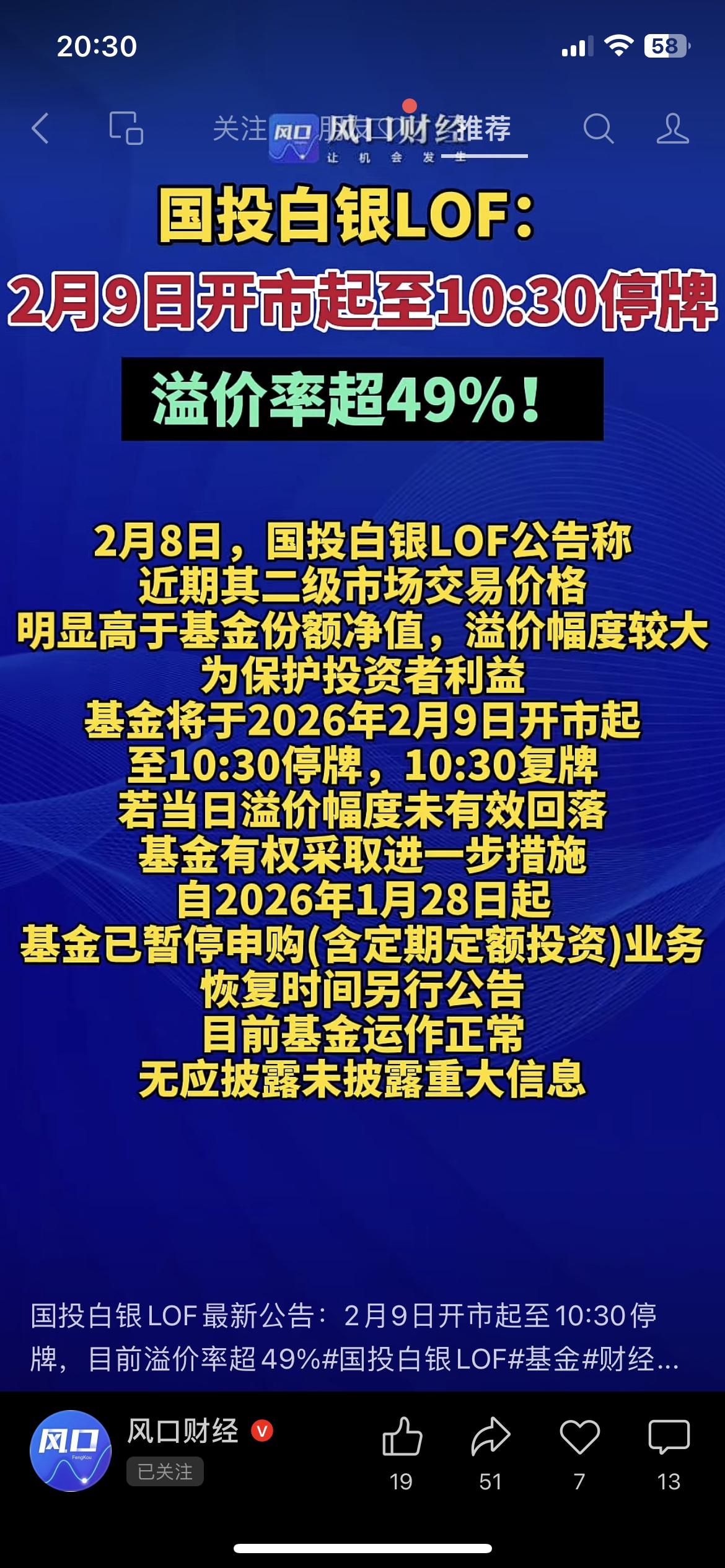 💥炸了!白银基金溢价**49%**紧急停牌!这不是捡漏,是镰刀! 我闺蜜小楠昨天凌晨还在群里喊“姐妹们冲!白银涨疯了!”,结果今天一睁眼就傻了:国投白银LOF直接停牌,溢价率干到49%! 高溢价不是天上掉馅饼,是别人挖好的坑,就等你跳进去当接盘侠! 咱普通人买ETF/LOF,记住两个保命指标:规模10亿以上、跟踪误差小于0.1%,别为了贪小便宜把本金搭进去! 你会趁跌加仓白银基金,还是直接远离高溢价陷阱? 白银基金 基金避雷 财经热点 国投白银LOF 市场有风险,投资需谨慎