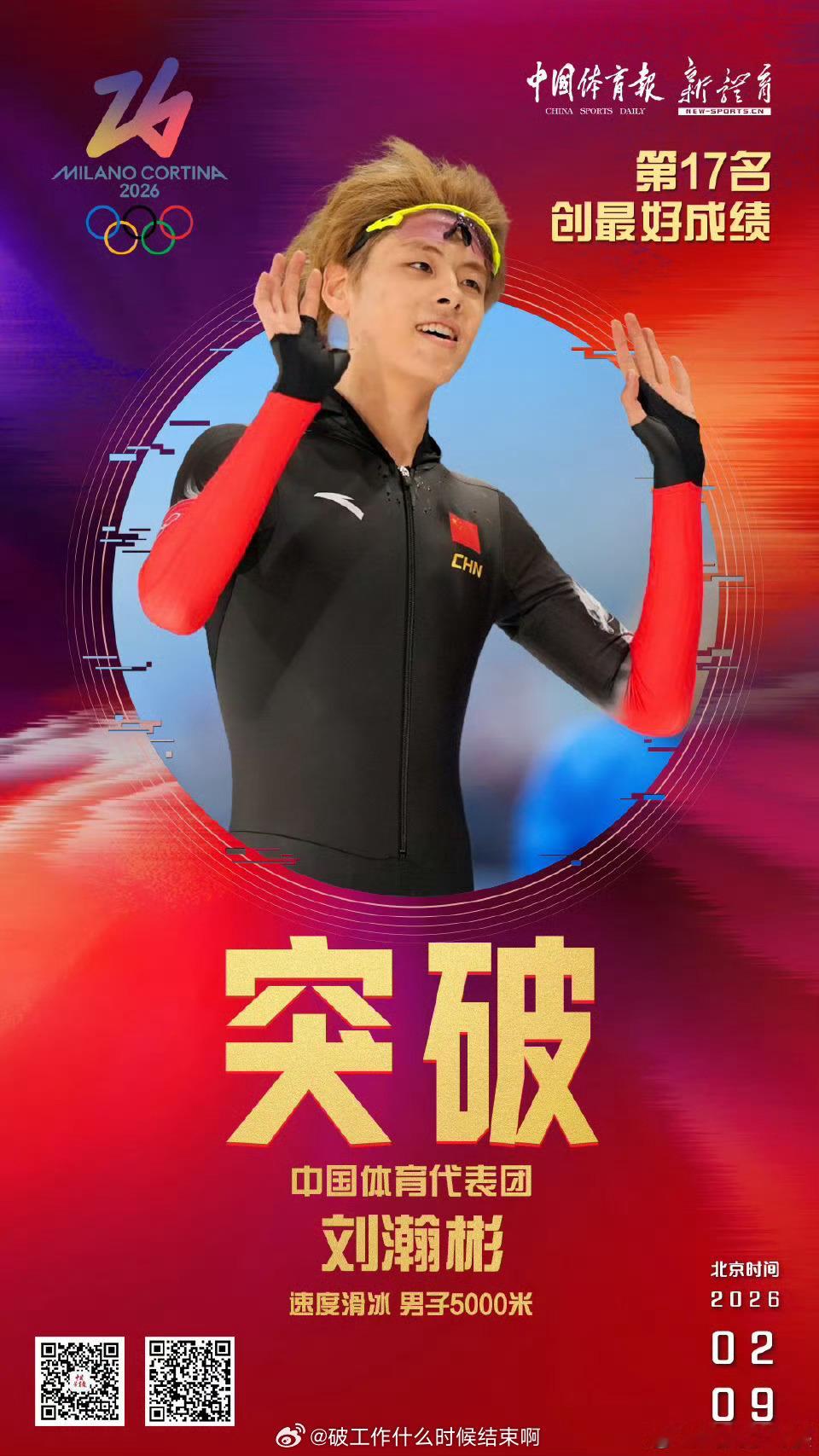 ⛸️刘瀚彬6′24″25获得第17名,刷新中国体育代表团冬奥会该项目的最好成绩!