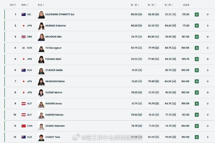 ⛷️张小楠总分154.50(79.75、71、74.75)排名第11晋级决赛