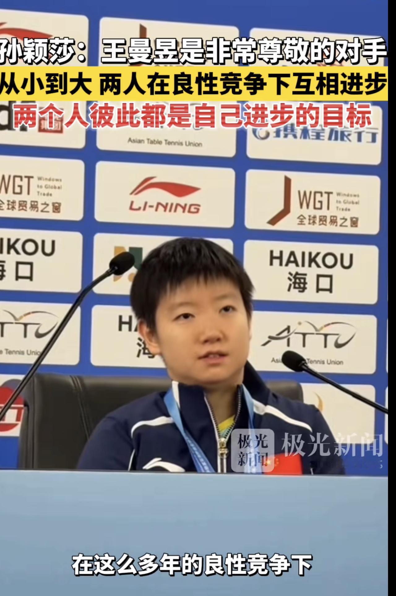 莎莎赛后这2句发言:比夺冠更加”让人信服”! 说到决胜局(亚洲杯决赛)8-7领先时的那个争议球,换作其他人,丢了一个关键分,肯定还在纠结“那球到底算不算”,可是莎莎却说“这也是比赛的一部分”,轻描淡写就翻篇了,还补上“做好自己比纠结争议更好”。客观来说,竞技体育确实没有绝对完美的判罚,如果你揪着不放,只会打乱自己的节奏,因为运动员没法控制,莎莎这股子“做好自己”的清醒,这体现了她的通透。 莎莎评价曼昱说“曼昱是从小到大非常尊敬的对手,良性竞争,相互促进”。这话听着暖心,也透着大格局。莎莎从不把队友当“敌人”,反而认可爱拼的队友,懂得“你追我赶才跑得更快”的理儿。这种把竞争当成养分的心态,比赢球本身更见功力。 相比夺冠来说,这两句发言,一句显担当,不被场外因素绊住脚;一句见格局,懂得尊重对手才能成就自己。 国乒需要的女单一姐! 球打得好,心态更稳,格局还大,这样的莎莎,你喜欢吗?