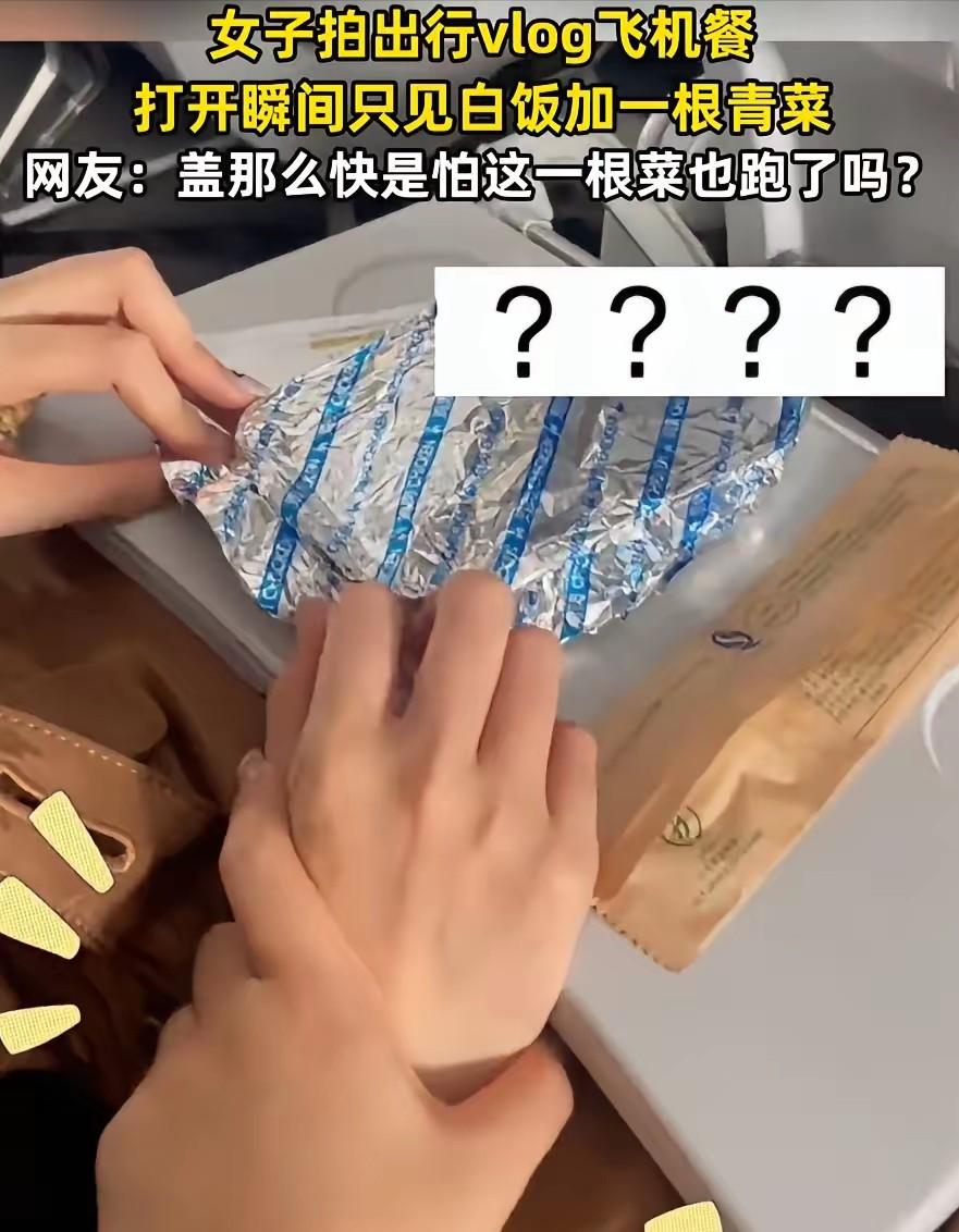 伤害性不高侮辱性极强!山东,一女子坐飞机出行,飞机起飞不久空姐就端上来飞机餐,万万没想到,女子把盖子打开一看,里面就只有一碗饭加一根青菜,吓得女子连忙盖上了盖子。网友:盖那么快是怕这一根菜也跑了吗? “啪”的一声,塑料盖被狠狠扣回原位。 这不是遭遇了气流颠簸,也不是为了防止泼洒。这是2026年2月,万米高空之上,一位山东女乘客下意识的肢体“拒收”。 就在0.5秒前,她还在对着Vlog镜头满怀期待。航班平稳进入巡航阶段,空乘推着餐车经过,那份白色的餐盒递到手中时,还是有点分量的。 为了记录生活,她特意架好手机,嘴里念叨着“吃饭吧”,准备给这次旅途留个温馨的底。 但这温情没能撑过揭盖的一瞬间。 当餐盒的一侧被掀开,镜头忠实地记录下了民航史上由于过度极简而显得极具荒诞感的一幕:大半个盒子里,铺陈着质地偏硬的白米饭,上面躺着一根青菜。 是的,只有一根。没有肉燥,没有酱汁,甚至没有第二根叶子来凑个双数。那根青菜孤零零地趴在碳水化合物的荒原上,绿得让人心里发慌。 女子的反应快得惊人。甚至不需要大脑皮层处理完视觉信号,她的手脊髓反射般地将盖子瞬间合上。 这不仅是失望,更像是一种被生活突然幽了一默后的惊恐。视频发到网上,那个“光速关盖”的动作成了最大的笑点。 网友的评论比段子手还狠:“盖这么快,是怕这根独苗趁机跑了吗?”还有人给这顿饭起了个极具禅意的名字——“空中辟谷套餐”。毕竟,连油星都看不见,这对减肥人士来说简直是业界良心。 笑归笑,视频背后的真相其实有个物理层面的反转。 随着热搜冲顶,当事人不得不出面解释:这是一场误会。那个让她怀疑人生的餐盒,其实是个“双头设计”。 当时她只掀开了装主食的一侧,而在未开封的另一端,确实藏着少量的配菜。这并非真的是“纯白饭配草”。 但这个迟来的真相,并没有消解那一瞬间的滑稽感,反而像是一种尴尬的补丁。即便打开了另一侧,依然改变不了那根青菜带来的视觉冲击力。 大家之所以对着这个视频疯狂共情,不是因为不懂餐盒结构,而是因为那一瞬间的“寒酸”,精准击中了每个人对如今航空服务的隐痛。 那个“只有一根青菜”的误读,其实比真相更接近大众的心理现实。 把时间轴往前推几年,经济舱的桌板上还不至于如此萧条。那时候有热腾腾的面包,有切好的水果,有独立包装的零食,甚至还能在一鸡一鱼之间做个选择。 而现在,这是一场发生在万米高空的“减法账单”。 那一根青菜,其实是行业内卷的缩影。机票价格在平台上杀得刺刀见红,航司要在微薄的利润里抠出生存空间,刀子自然就落在了这些“非必要生命体征”上。 成本压力像一只看不见的手,先是抽走了免费行李额,接着挤压了腿部空间,现在终于对餐盘里的卡路里下手了。 航司也很委屈:众口难调,配多了是浪费,配少了被吐槽,关键是票价已经被压到了地板上。 这是一场隐形的博弈。我们在嘲笑那根青菜的时候,其实是在面对一个赤裸的商业逻辑——当你选择了低价出行的那一刻,某种体面的“服务颗粒度”就已经被悄悄剥离了。 女子那一声“啪”的合盖声,与其说是为了防止青菜逃跑,不如说是对这种消费降级最本能的抗议。 但抗议归抗议,只要票价足够便宜,下一次我们还是会坐进那个狭窄的座位,接过那个轻飘飘的餐盒。 至于那根青菜会不会跑?不用担心。在这个成本为王的时代,它其实哪里也去不了,只能安静地躺在米饭上,做一枚沉默的经济学注脚。 参考信息:紫牛新闻.(2026-02-08).热搜第一!女子吐槽飞机餐仅一根青菜配米饭受争议,长龙航空回应