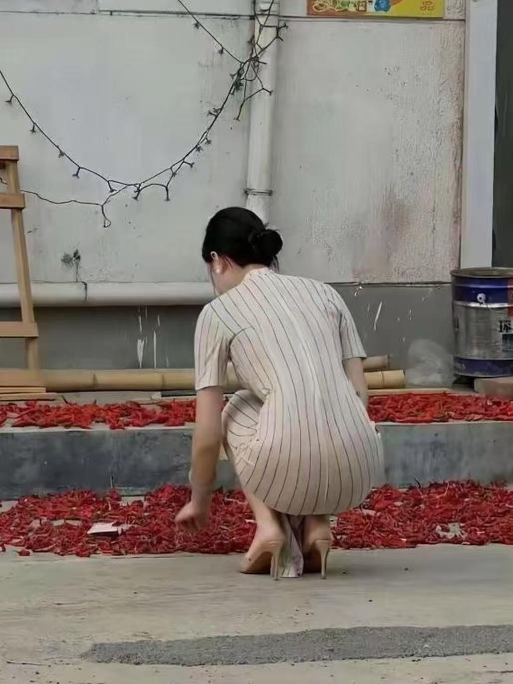 张天爱跟素人合影,胯真的好宽,大宅院似的